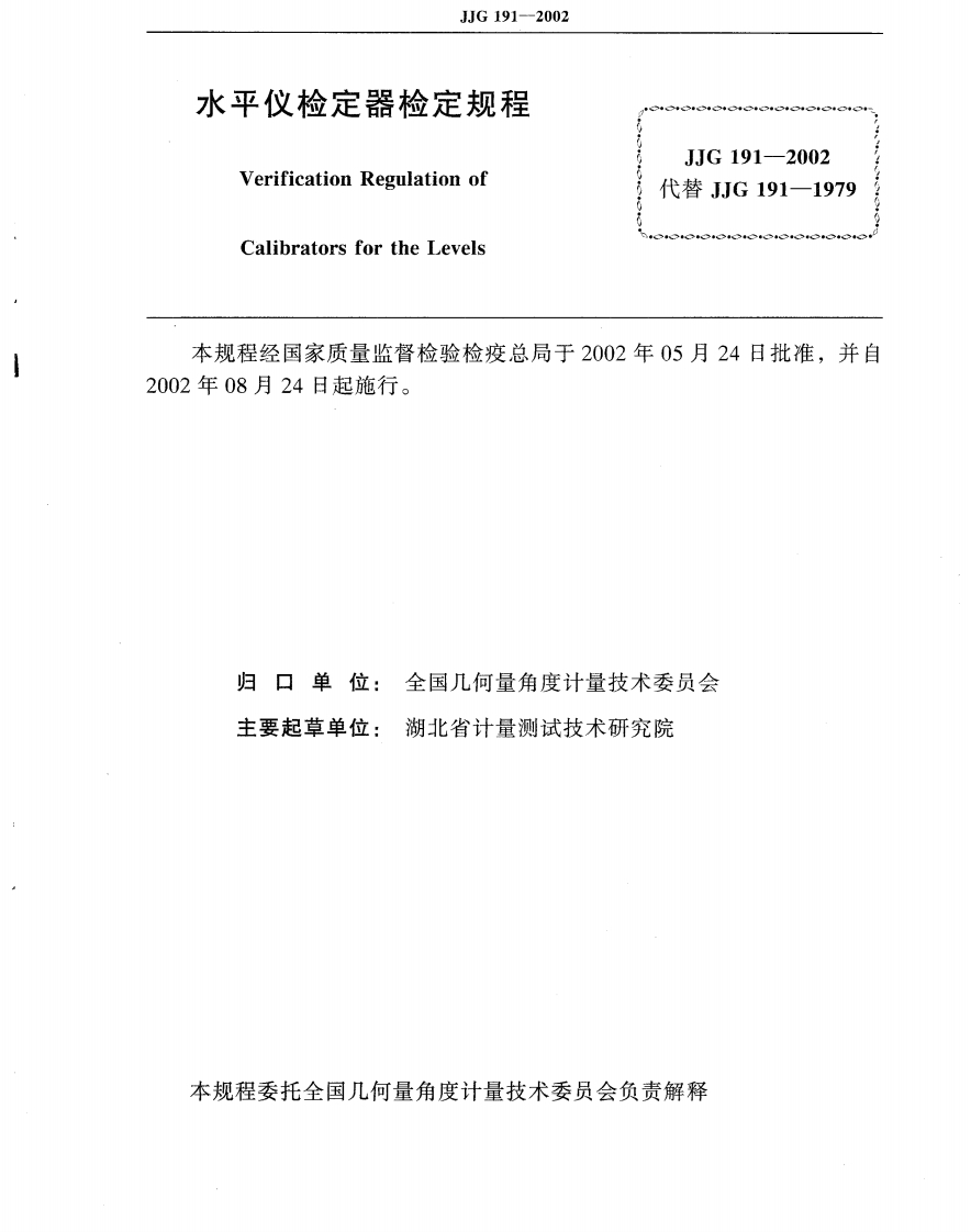 JJG191-2002水平仪检定器检定规程348072@abc4个月前发布关注私信0.38MB14页046JJG191-2002水平仪检定器检定规程此内容为付费资源,请付费后查看¥16¥23黄金会员免费钻石会员免费立即购买您当前未登录!建议登陆后购买,可保存购买订单付费资源 第1页 / 共14页 第2页 / 共14页 试读已结束,还剩12页,您可下载完整版后进行离线阅读 THE END标准规范 文本预览 中华人民共和国国家计量检定规程JJG191一2002水平仪检定器Calibrators for the Levels2002-05-24发布2002-08-24实施国家质量监督检验检疫总局发布 查看更多 收起部分 喜欢就支持一下吧收藏