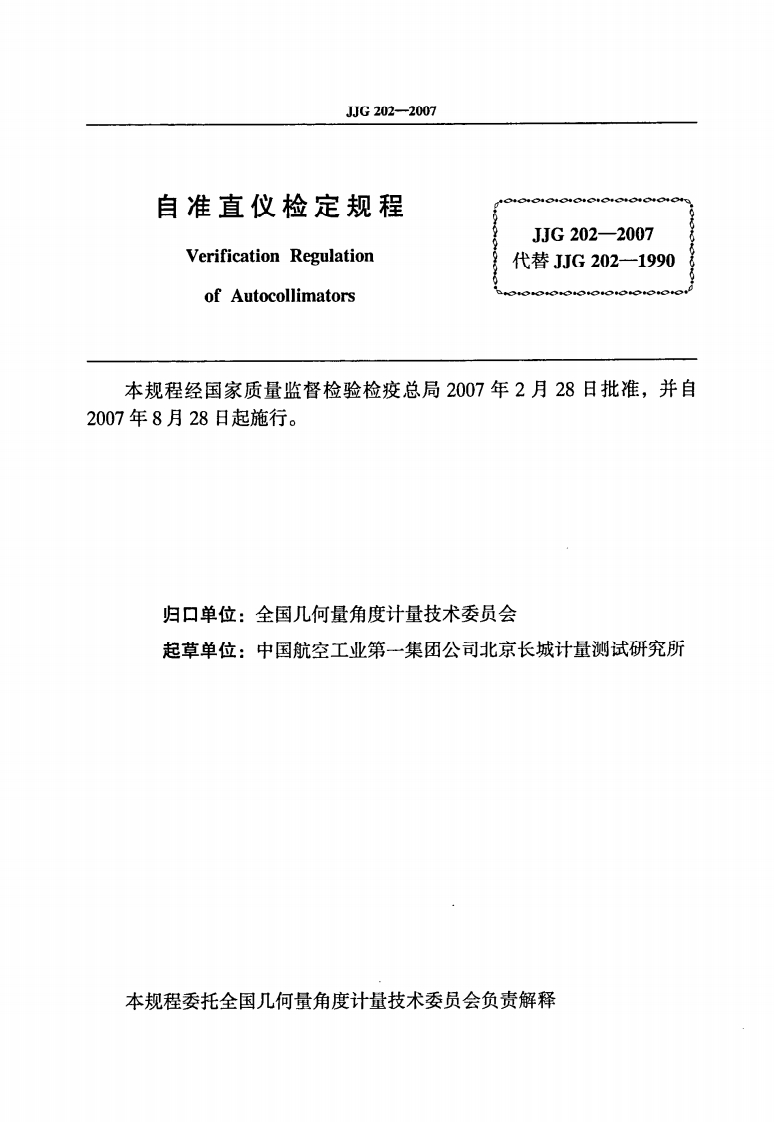 JJG202-2007自准直仪348072@abc4个月前发布关注私信0.85MB26页023JJG202-2007自准直仪此内容为付费资源,请付费后查看¥16¥23黄金会员免费钻石会员免费立即购买您当前未登录!建议登陆后购买,可保存购买订单付费资源 第1页 / 共26页 第2页 / 共26页 试读已结束,还剩24页,您可下载完整版后进行离线阅读 THE END标准规范 文本预览 可打G中华人民共和国国家计量检定规程JJG202-2007自准直仪Autocollimators.2007-02-28发布、2007-08-28实施国家质量监督检验检疫总局发布 查看更多 收起部分 喜欢就支持一下吧收藏