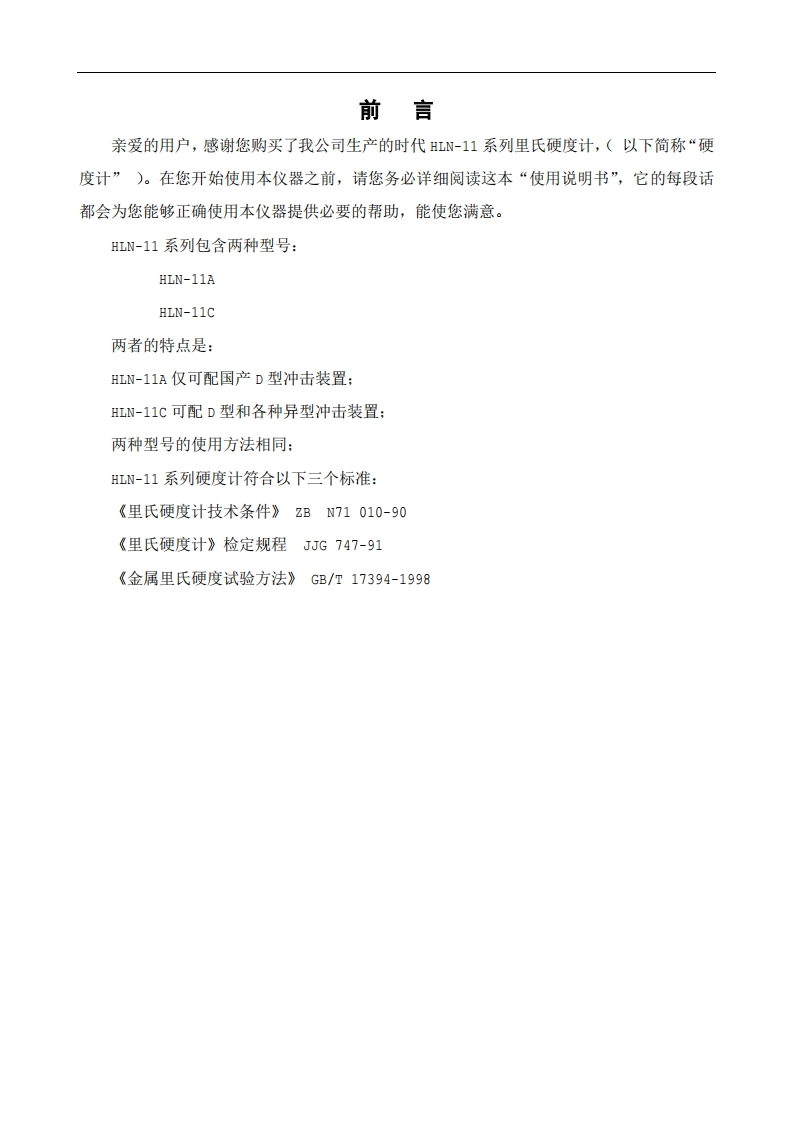 时代HL-11系列里氏硬度仪使用说明书目时代集团公司