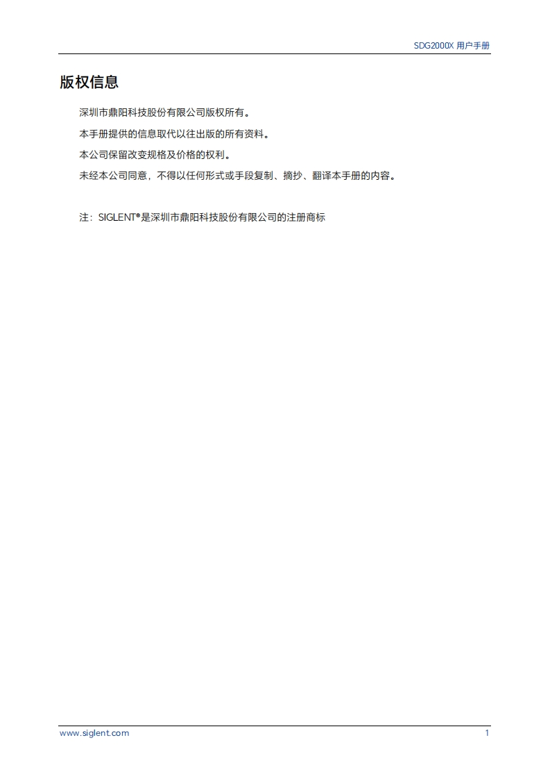SDG2000X系列函数/任意波形发生器用户手册CN02G深圳市鼎阳科技股份有限公司SIGLENT TECHNOLOGIES CO.,LTD.
