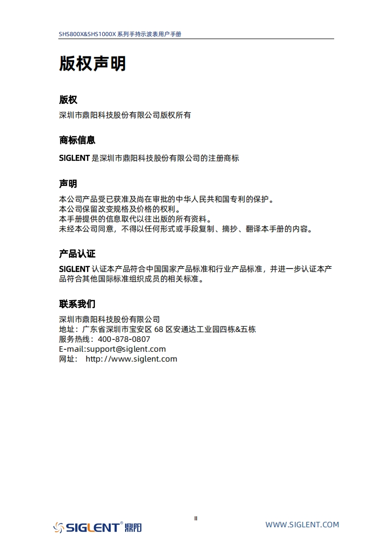 SIGLENTSHS800XSHS1000X手持示波表用户手册CNO1BJuy,2022SIGLENT TECHNOLOGIES CO..LTD