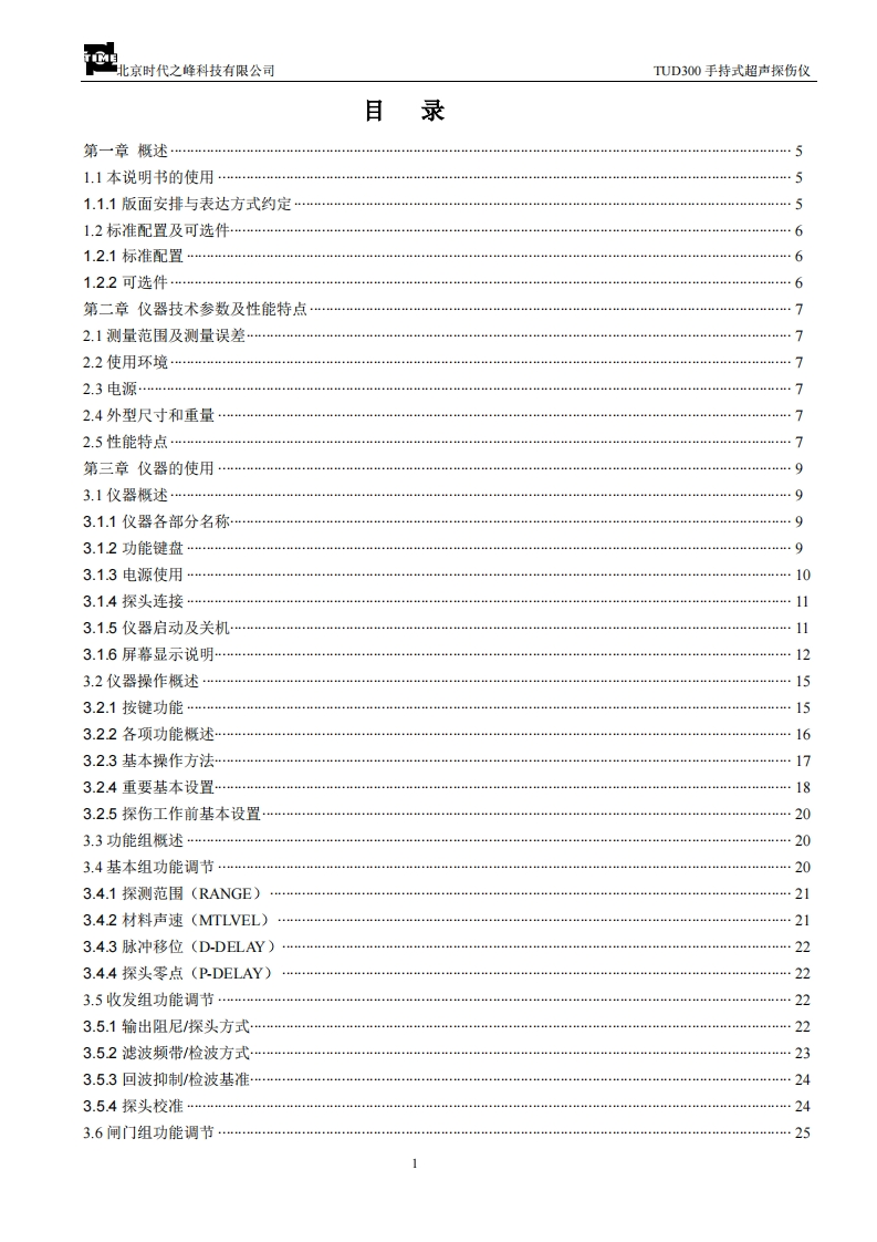 TUD300手持式超声探伤仪使用说明书子目北京时代之峰科技有限公司