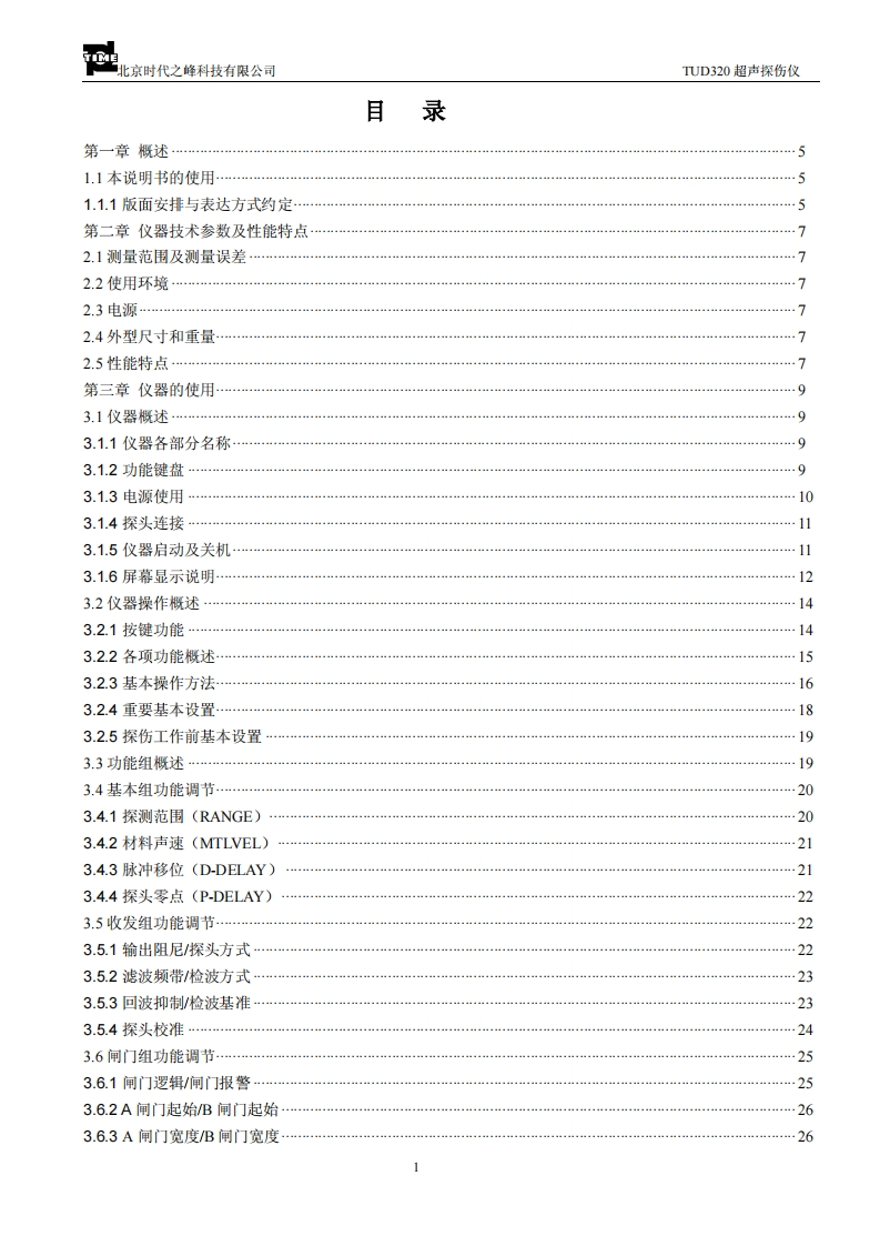 TUD320超声探伤仪使用说明书子目北京时代之峰科技有限公司