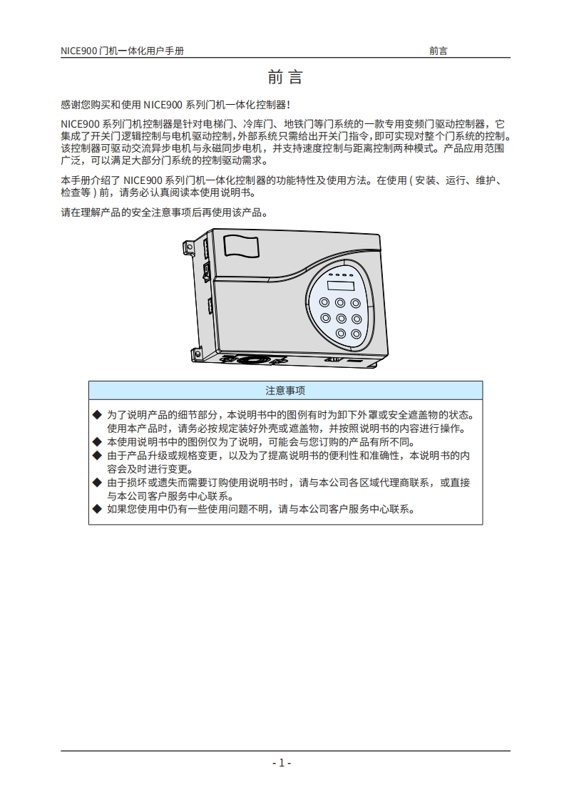 19010040-SCY_B05《NICE900门机一体化操作说明书手册》20210222348072@abc28天前发布关注私信2.65MB77页02119010040-SCY_B05《NICE900门机一体化操作说明书手册》20210222此内容为付费资源,请付费后查看¥29¥39黄金会员免费钻石会员免费立即购买您当前未登录!建议登陆后购买,可保存购买订单付费资源 第1页 / 共77页 第2页 / 共77页 试读已结束,还剩75页,您可下载完整版后进行离线阅读 THE END工控机电 文本预览 AonarcAonarch△ARNINGNICE900门机一体化用户手册用户手册B05INOVANCE资料编码19010040 查看更多 收起部分 喜欢就支持一下吧收藏