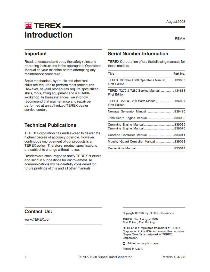 TEREX-移动发电机-T270_T280维修手册348072@abc7天前发布关注私信1.86MB44页041TEREX-移动发电机-T270_T280维修手册此内容为付费资源,请付费后查看¥19¥29黄金会员免费钻石会员免费立即购买您当前未登录!建议登陆后购买,可保存购买订单付费资源 第1页 / 共44页 第2页 / 共44页 试读已结束,还剩42页,您可下载完整版后进行离线阅读 THE END工控机电 文本预览 凶TEREXService ManualT270/T280First EditionRev APart No.134888August 2008 查看更多 收起部分 喜欢就支持一下吧收藏