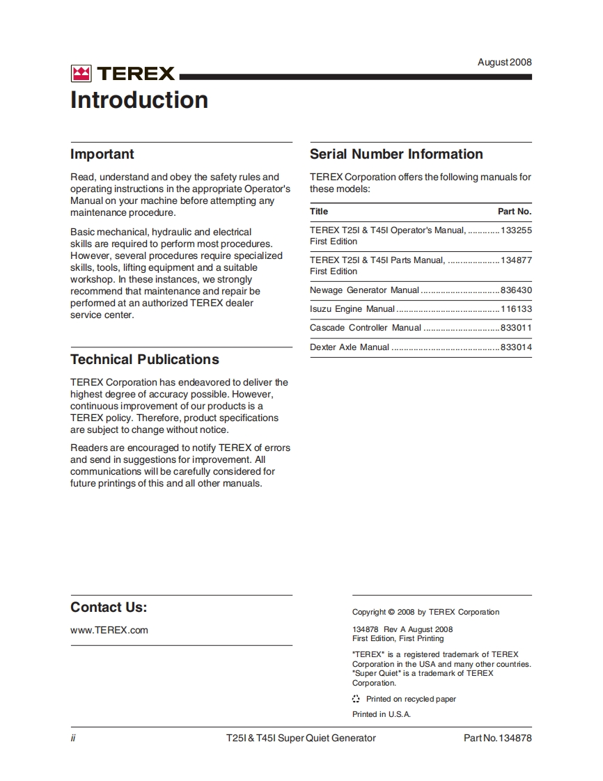TER日X-移动发电机-T25_T45-C1_1维修手册348072@abc6天前发布关注私信1.88MB38页047TER日X-移动发电机-T25_T45-C1_1维修手册此内容为付费资源,请付费后查看¥19¥29黄金会员免费钻石会员免费立即购买您当前未登录!建议登陆后购买,可保存购买订单付费资源 第1页 / 共38页 第2页 / 共38页 试读已结束,还剩36页,您可下载完整版后进行离线阅读 THE END工控机电 文本预览 凶TEREXService ManualT25/T45First EditionRev APart No.134878August 2008 查看更多 收起部分 喜欢就支持一下吧收藏