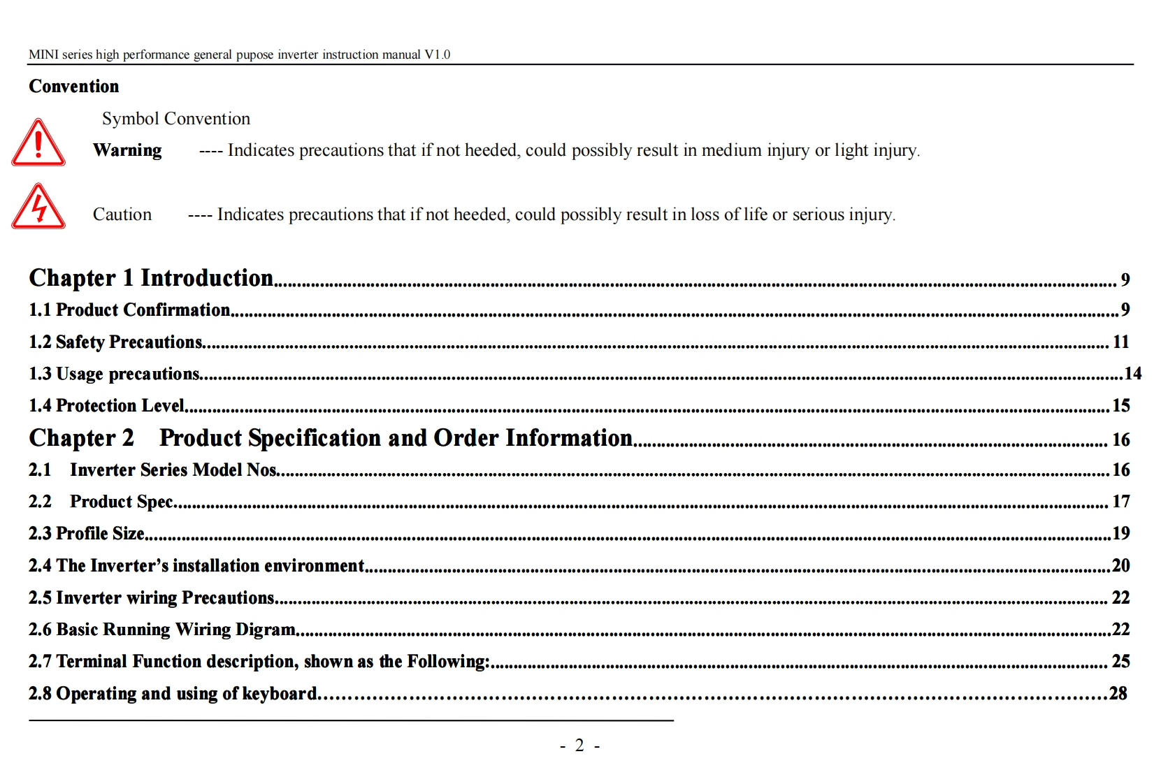 MINI series high performance general pupose inverter instruction manual V1.0MINI Series Frequency InverterInstruction Manual (V1.0)Shenzhen Easydrive Inverter Technology Co.LtdAddr:Guangxian gongye zone,Bagua 3 road,Futian district,ShenzhenPreface----Thanks for using MINI series high performance vector control inverter manufactured by Shenzhen Easydrive Frequency Inverting Technology Co.Ltd.------Based on ED3100 series,MINI series inverter is a type of sensorless current vector inverter independently developed by Shenzhen EasydriveInverter Technology Co.Ltd.On premise of enhancing stability,with functions are available,like motor constant self-identification,analog currentinput,switch value input,RS485 communication,practical advanced function etc.MINI provides manufacturers and ender users with highlyintegrated all-in-one solution.It is greatly helpful for cutting down the purchasing cost and company operation cost,and reduce the equipment size.----Before using Inverter,please let the users and technicians read this manual carefully to make sure correctly install and operate the inverterso that the inverter could exert its best performance.If this manual is not detailed enough description of a place can be found in our companyED3100 series manual.-----The content of the manual could be updated without prior notice.Please follow up the new versionTo readersThis manual is suited for below readers:---Inverter installation staff,engineer technician(electric engineer,electric operator),designers-1-