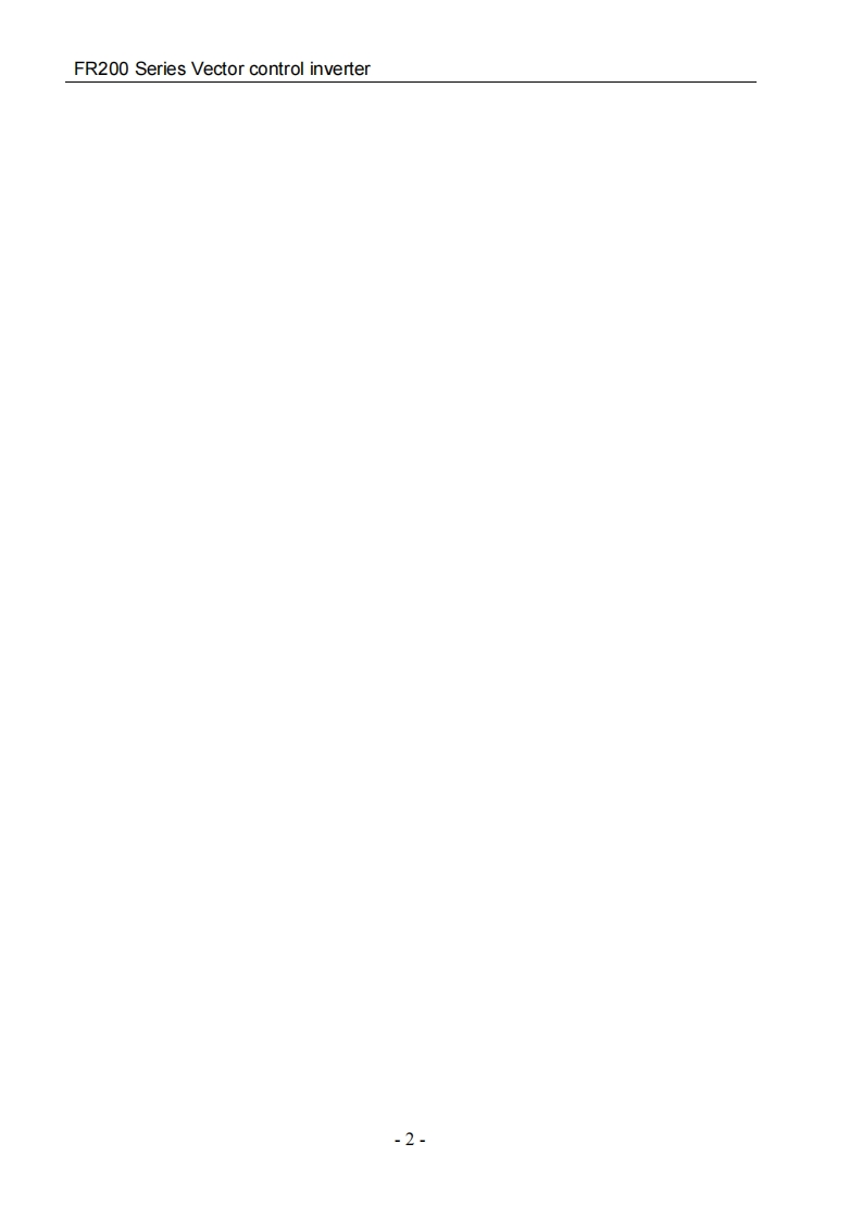 FR200 Series Vector control inverterPrefaceThank you for choosing FRECON developed and produced FR200 seriesvector control inverter.FR200 series vector control inverter is mainly positioned as a high-end market for OEMcustomers and the specific requirements of fan and pump load applications,its flexible design,bothembedded SVC and VF control in one,can be widely used for speed control accuracy,torqueres ponse speed,low-frequency output characteristics and other situations with higher requirements.This user manual supplies a detailed description of FR200 series vector control inverter includesproduct characterization,structural features,parameter setting,operation and commissioning,inspection maintenance and other contents.Be sure to carefully read through the safety precautionsbefore use,and use this product on the premise that personnel and equipment safety is ensured.IMPORTANT NOTESTo illustrate the details of the products,pictures in this manual based on products with outercasing or safety cover being removed.When using this product,please be sure to well installouter casing or covering by the rules,and operating in accordance with the manual contents.The illustrations this manual for illustration only and may vary with different products you haveordered.The company is committed to continuous improvement of products,product features willcontinue to upgrade,the infommation provided is subject to change without notice.If you are using have questions,please contact our regional agents or our customer servicecenter.Customer Service Tel 0755-33067999.The company's other products please visit our website.http://www.frecon.com.cn-1-