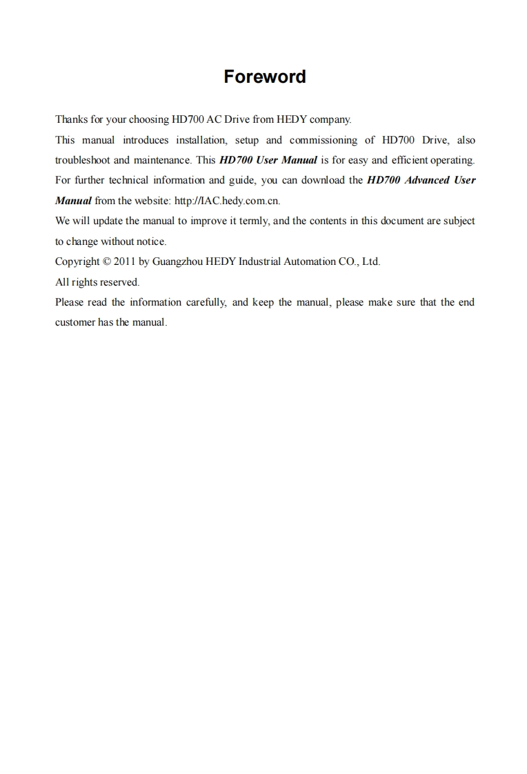 HEDYHD700 User Manual(0.4kW-500kW)HEDYHEDYHEDY△4△V1.4