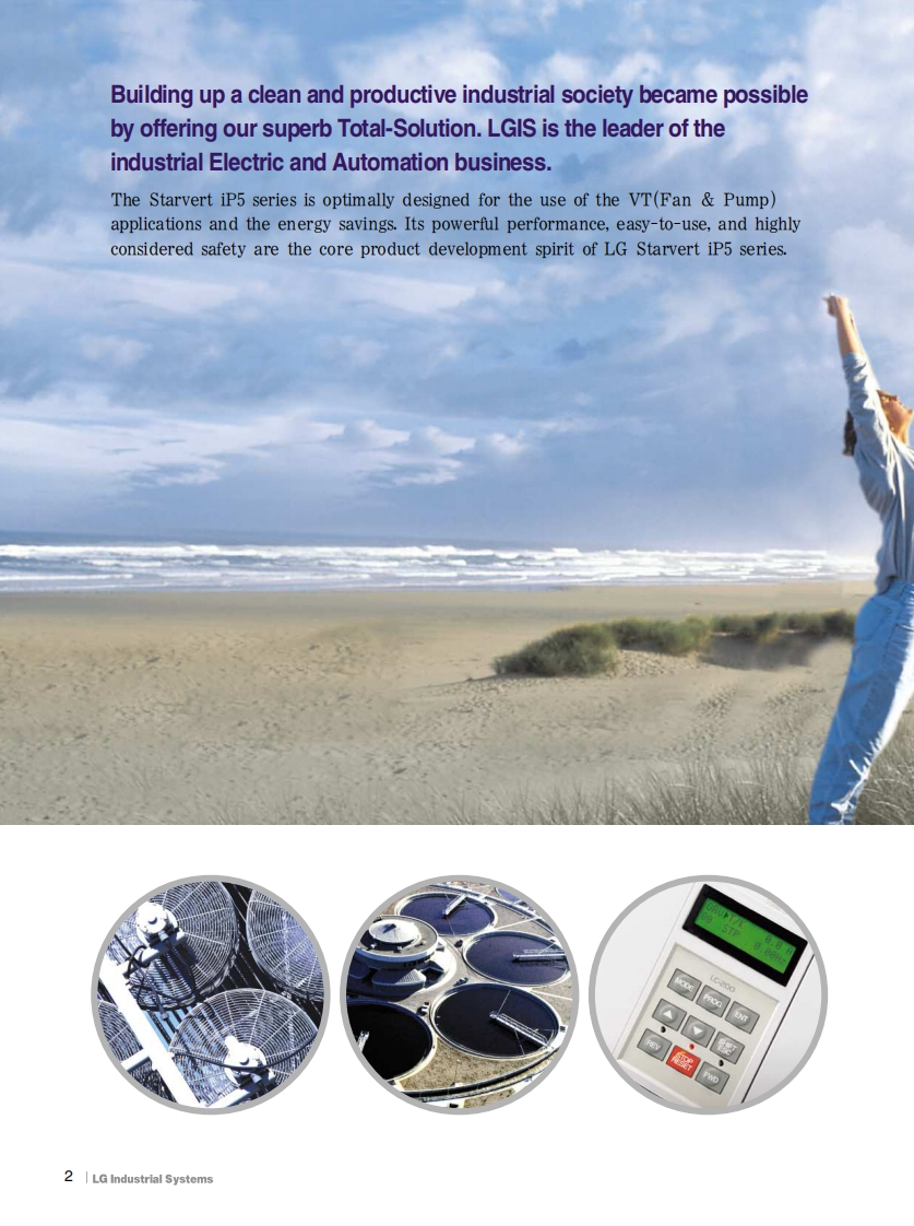ion Leader in Electrics&AutomationUniquely designed for the Fan PumpSTARVERT iP5An eptimum selution fer the VT application contrel and energy savings5.5-30kW7.5-40HP)3 Phase200-230 /olts5.5-30kW7.5-40HP)3 Phase380460VotsAutomation Equipmentv留LG Industrial Systemswww.Igis.com