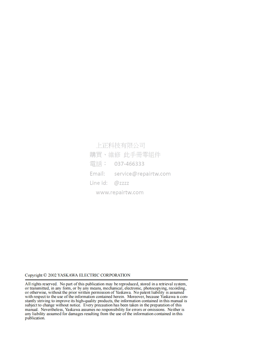 YASKAWA-I Series SGMBH/SGDM/SGDHUSER'S MANUALAC Servodrive(200 V.22 to 37 kW)(400V,22to55kW)SGMBH ServomotorSGDM/SGDH SERVOPACK購買、維修此手冊零组們電話:037-466333Email:service@repairtw.comLine id:@zZ22www.repairtw.comYASKAWAMANUAL NO.SIE-S800-32.4B
