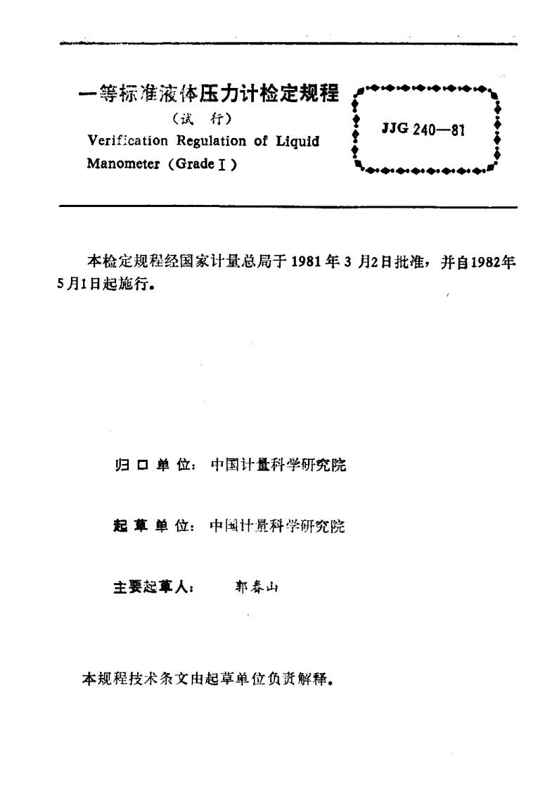 JJG240-1981一等标准液体压力计(试行)348072@abc4个月前发布关注私信0.32MB19页049JJG240-1981一等标准液体压力计(试行)此内容为付费资源,请付费后查看¥16¥23黄金会员免费钻石会员免费立即购买您当前未登录!建议登陆后购买,可保存购买订单付费资源 第1页 / 共19页 第2页 / 共19页 试读已结束,还剩17页,您可下载完整版后进行离线阅读 THE END标准规范 文本预览 中华人民共和国国家计量检定规程一等标准液体压力计JJG240-81(试行) 查看更多 收起部分 喜欢就支持一下吧收藏