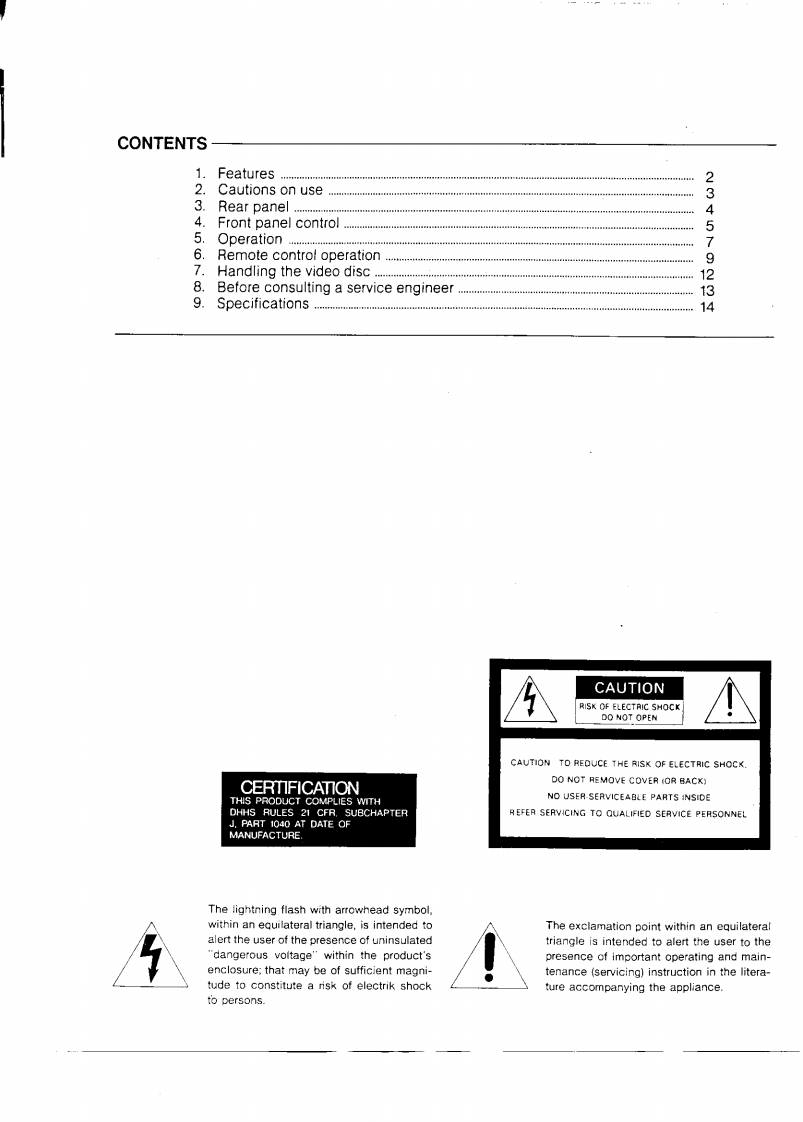 LASER VIDEOHITACHIINSTRUCTION MANUALOISCPLAYER95501.●HrTACHI43DANGER Invisible laser radiation when open and interlock fai-Awoid dmct axposure to peam.CAUTION:Use of controls or adjustments or performance of pro-cedures other than those specified herein may resultin hazardous exposure.