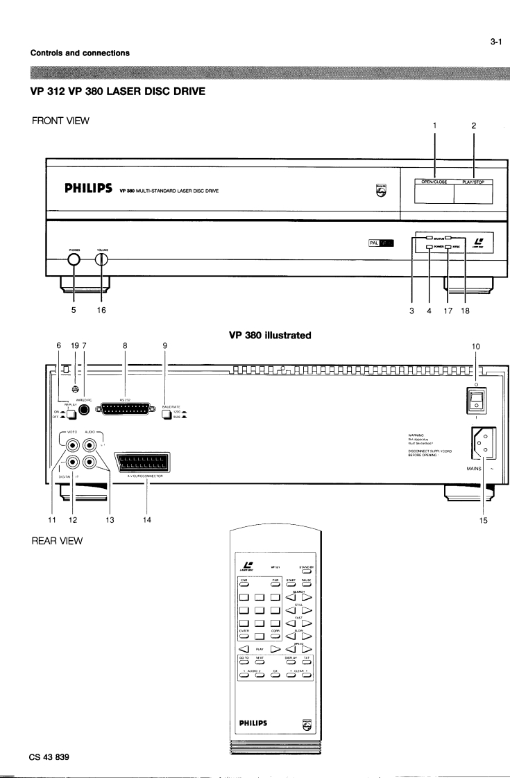 Professional optical disc drive multi standard 22VP380ServiceServiceService45802AService ManualIn this manual only the differences between theVP310 and the VP380 are mentioned.For repair and partslist the Service Manual ofLASER DISCthe VP310 must be used.Differences in the VP380:ChapterPageTechnical data2-1Control and Connection3-1Partslist cabinet VP3805-1Blockdiagram6-1Wiring digrams7-1Multi panel diagrams10-1Multi panel lay-out10-2u processor diagram11-1processor lay-out11-2Video signal path description12-1÷12-3Measurements and adjustments video12-4÷12-5Partslist video12-6Video panel lay-out chip side12-7Video schematic diagram12-8÷12-11Video panel lay-out component side12.12SAnalog audio panel lay out and partslist13-1Varning!Analog audio schematic diagram13-2Osynlig laserstralning nar denna del ar oppnad ochList of F-codes commands15-2sparren ar urkopplad.Betakta ej stralen.Additional information15-2DKAdvarsel!Usynlig laserstraling ved abning nar sikkerhedsafbrydereer une af funktion.Undga udsaettelse for straling.SGBVaroitus!Safety regulations require that the set be restored to its original conditionLaite sisaltaa laserdiodin,joka lahettaa nakymatontaand that parts which are identical with those specified be used.silmille vaarallista lasersateilya.Published by IMS Printed in The Netherlands Copyright reserved Subject to modificationPHILIPSPHILIPSCS43837