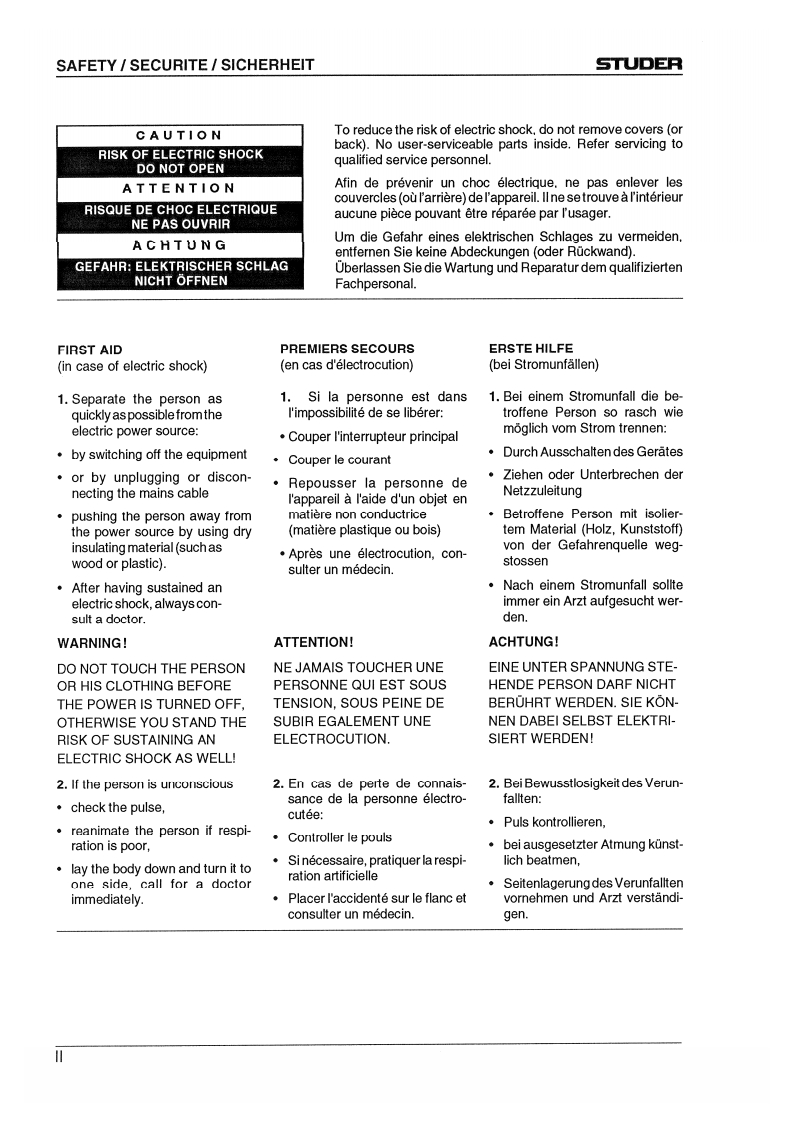 STUDERrofessional audio equipmentStuder B77 MKII Stereo Tape RecorderServiceanleitung Service Instructions Instructions de service1.AllgemeinesGeneralGéneralites2.Technische DatenTechnical specificationsCaracteristiques techniques3.AusbauDismantlingDemontage4.MechanikTape transport mechanismMecanique5.ElektronikElectronicsElectronique6.Elektrische Einstellungen,MessungenElectrical adjustmentsMesures et reglages electriques7.SchaltungssammlungSet of schematicsRecueil des schemas8.ErsatzteillisteParts listListe des pieces detachees9.Spezial VersionenSpecial VersionsVersions specialesPrepared and edited byCopyright by Studer Professional Andio AGStuder Professional Audio AGPrinted in SwitzerlandTechnical Documentation0 rder no.10.18.1802(Ed.0303)Althardstrasse 30CH-8105 Regensdorf -SwitzerlandSubject to changeStuder is a registered trade mark of Studer Professional Audio AG,Regensdorf