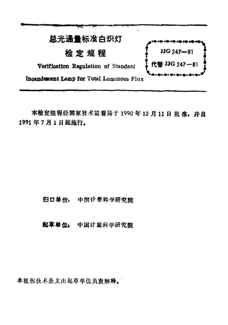 JJG247-1991总光通量标准白炽灯348072@abc4个月前发布关注私信0.31MB19页048JJG247-1991总光通量标准白炽灯此内容为付费资源,请付费后查看¥16¥23黄金会员免费钻石会员免费立即购买您当前未登录!建议登陆后购买,可保存购买订单付费资源 第1页 / 共19页 第2页 / 共19页 试读已结束,还剩17页,您可下载完整版后进行离线阅读 THE END标准规范 文本预览 JJG中华人民共和国国家计量检定规程JJG247-91总光通量标准白炽灯1990年12月11日批准1991年7月1日实施国家技术监督局 查看更多 收起部分 喜欢就支持一下吧收藏