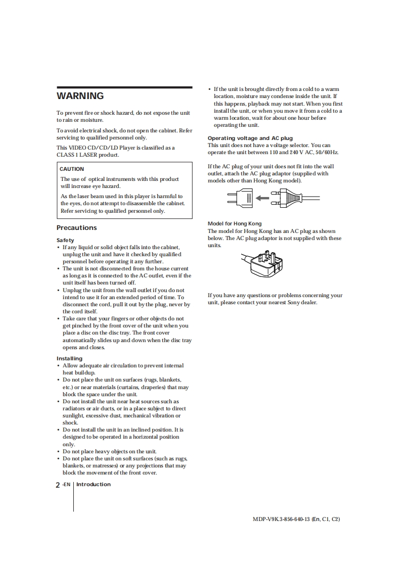 SONY26-00-130SONYVIDEO CD/CD/LD PlayerOperating Instructionsw■e+里'是Ce+E0'E-MDP-V9K11