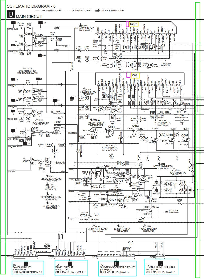 SCHEMATIC DIAGRAM-7一:+B SIGNAL LINE--:-B SIGNAL LINE→:FM/AM SIGNAL LINEMAIN SIGNAL LINEJHONO EQ CIRCUIT (W402)BMAIN CIRCUITCN401℃402TU_RDT916位+14W+ATA CUK4015152S3IC401TC9163AN40mtSTB GNLCHRCHK40247TU L-RCH10Ti6LCH器ROJK4@R404工1orRCH器14Ve402I1C402COAABB000086OP AMPR48C1000TaTO89g8S199gPANEL CIRCUIT(CP901)ON SCHEMATIC DIAGRAM-10