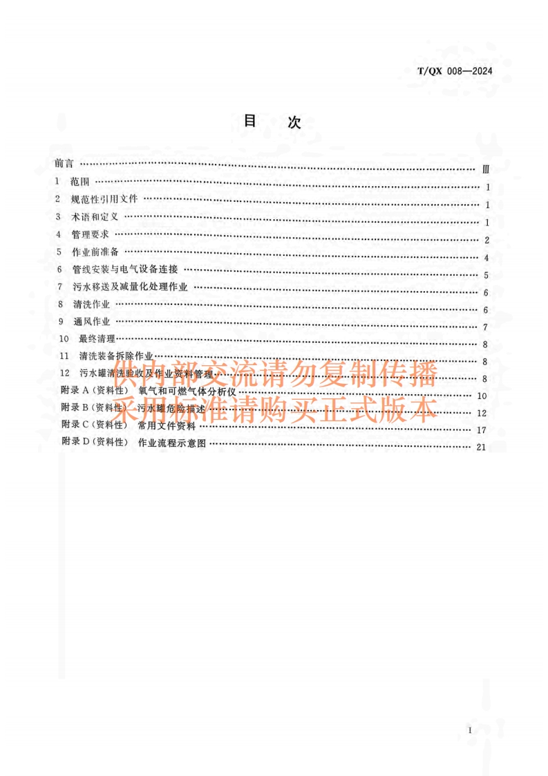 20240924014537699TQX008-2024油田污水罐机械清洗作业规范最终出版扫描稿-挂网1348072@abc3个月前发布关注私信4.45MB26页033520240924014537699TQX008-2024油田污水罐机械清洗作业规范最终出版扫描稿-挂网1此内容为付费资源,请付费后查看¥17¥22黄金会员免费钻石会员免费立即购买您当前未登录!建议登陆后购买,可保存购买订单付费资源 第1页 / 共26页 第2页 / 共26页 试读已结束,还剩24页,您可下载完整版后进行离线阅读 © 版权声明文章版权归作者所有,未经允许请勿转载。THE END标准规范 文本预览 1Cs03.080.10CCS P 02团体标准T/QX008-2024油田污水罐机械清洗作业规范Operation specification for mechanical cleaning of oilfield sewage tank供内部交流请勿复制传播采用标准请购买正式版本2024-04-22发布2024-09-01实施中国工业清洗协会发布巾里标准出版社中国标准出版社出版 查看更多 收起部分 喜欢就支持一下吧点赞5 分享QQ空间微博QQ好友海报分享复制链接收藏