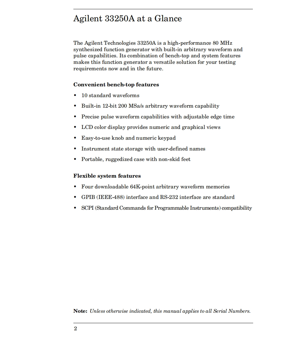 Service GuidePublication Number 33250-90011 (order as 33250-90100 manual set)Edition 2,March 2003Copyright Agilent Technologies,Inc.2000,2003For Safety information,Warranties,and Regulatory information,see the pages following the Index.Agilent 33250A80 MHz Function/Arbitrary Waveform Generator
