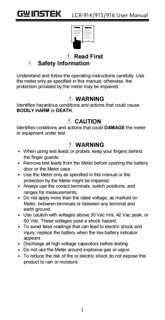 LCR-914-915-916_操作说明书手册_Rev_E_20200723348072@abc5天前发布关注私信1.71MB28页020LCR-914-915-916_操作说明书手册_Rev_E_20200723此内容为付费资源,请付费后查看¥39¥49黄金会员免费钻石会员免费立即购买您当前未登录!建议登陆后购买,可保存购买订单付费资源 第1页 / 共28页 第2页 / 共28页 第3页 / 共28页 试读已结束,还剩25页,您可下载完整版后进行离线阅读 THE END仪器仪表 文本预览 Hand-held LCR MeterLCR-914/915/916 SeriesUSER MANUALGW INSTEK PART NO.82CR-916ooME1客ISO-9001 CERTIFIEDMANUFACTURERG四InSTEK 查看更多 收起部分 喜欢就支持一下吧收藏