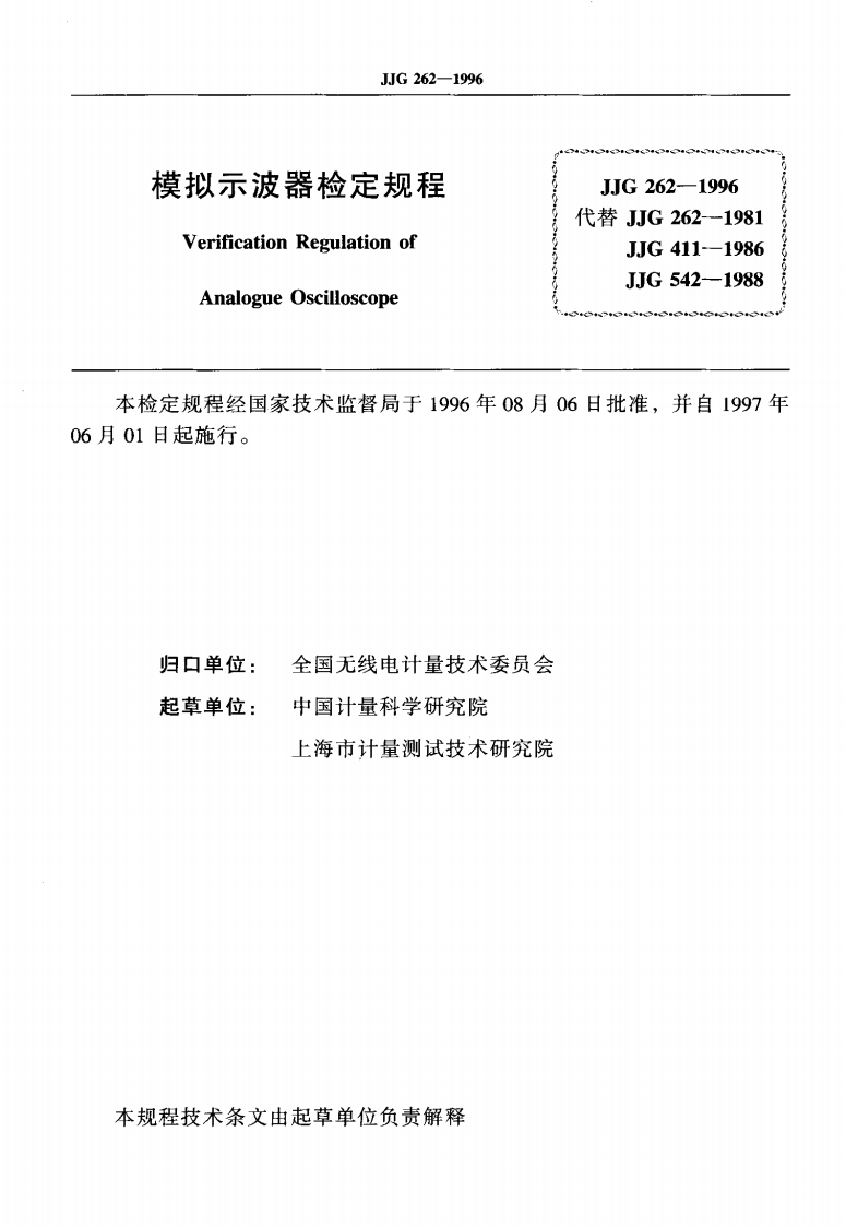 JJG262-1996模拟示波器348072@abc4个月前发布关注私信0.68MB28页027JJG262-1996模拟示波器此内容为付费资源,请付费后查看¥16¥23黄金会员免费钻石会员免费立即购买您当前未登录!建议登陆后购买,可保存购买订单付费资源 第1页 / 共28页 第2页 / 共28页 试读已结束,还剩26页,您可下载完整版后进行离线阅读 THE END标准规范 文本预览 可G中华人民共和国国家计量检定规程JJG262-1996模拟示波器Analogue Oscilloscope1996-08-06发布1997-06-01实施国家技术监督局发布 查看更多 收起部分 喜欢就支持一下吧收藏