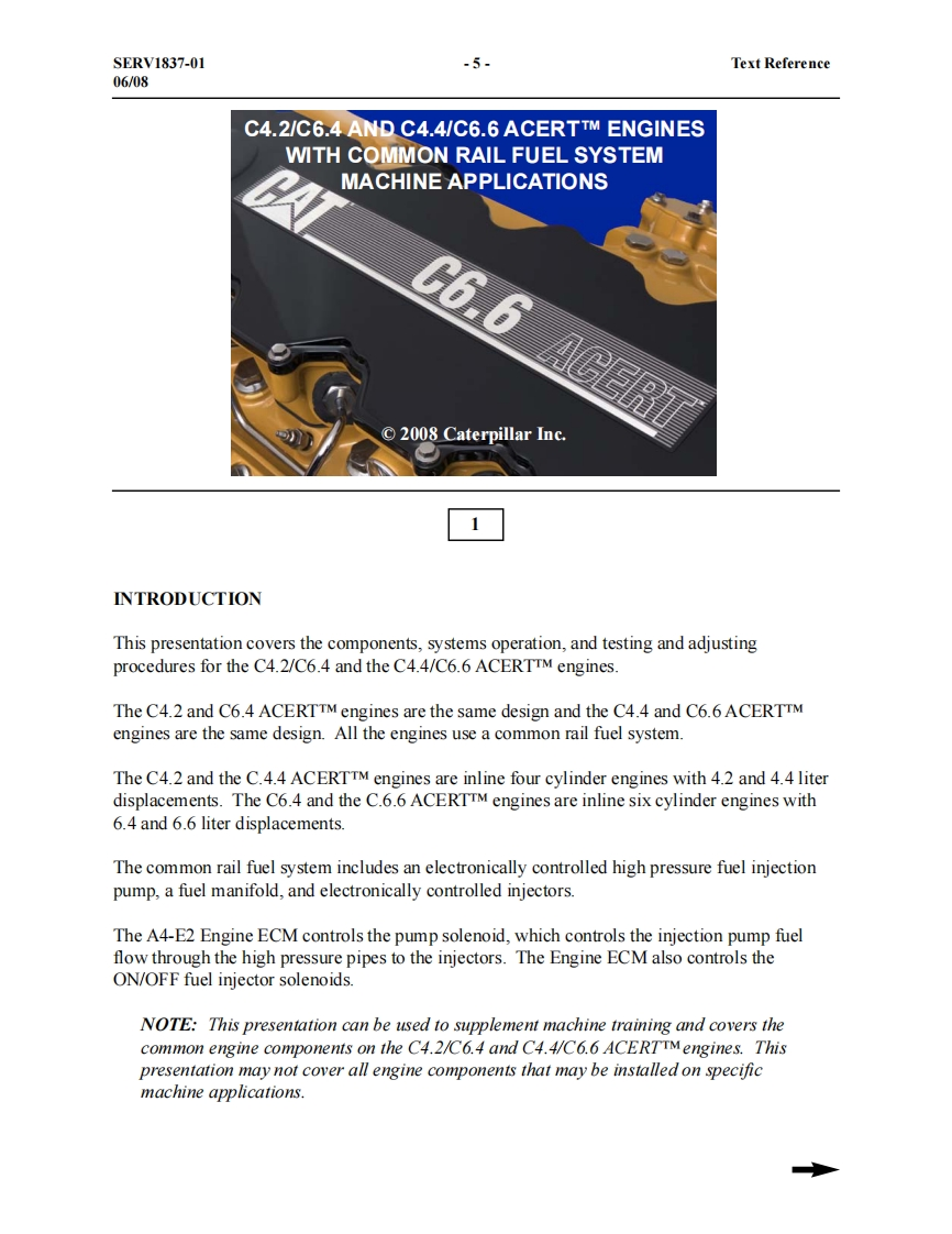 SERV1837-01CATERPILLARJune 2008GLOBAL SERVICE LEARNINGTECHNICAL PRESENTATIONcall Jahan Compressorurs uwLi /wpas h÷h▣966C4.2/C6.4 AND C4.4/C6.6 ACERTTMENGINESWITH COMMON RAIL FUEL SYSTEMMACHINE APPLICATIONSService Training Meeting Guide(STMG)