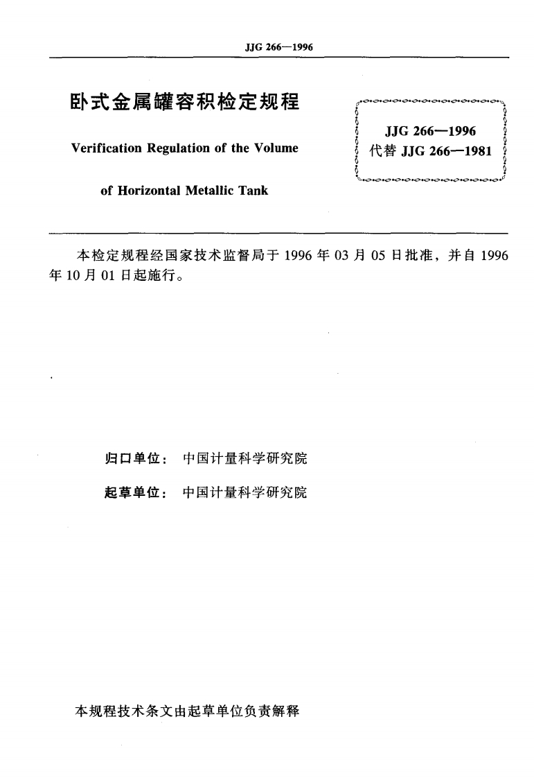 JJG266-1996卧式金属罐容积348072@abc4个月前发布关注私信0.56MB24页047JJG266-1996卧式金属罐容积此内容为付费资源,请付费后查看¥16¥23黄金会员免费钻石会员免费立即购买您当前未登录!建议登陆后购买,可保存购买订单付费资源 第1页 / 共24页 第2页 / 共24页 试读已结束,还剩22页,您可下载完整版后进行离线阅读 THE END标准规范 文本预览 可G中华人民共和国国家计量检定规程JJG266一1996卧式金属罐容积The Volume of Horizontal Metallic Tank1996-03-05发布1996-10-01实施国家技术监督局发布 查看更多 收起部分 喜欢就支持一下吧收藏
