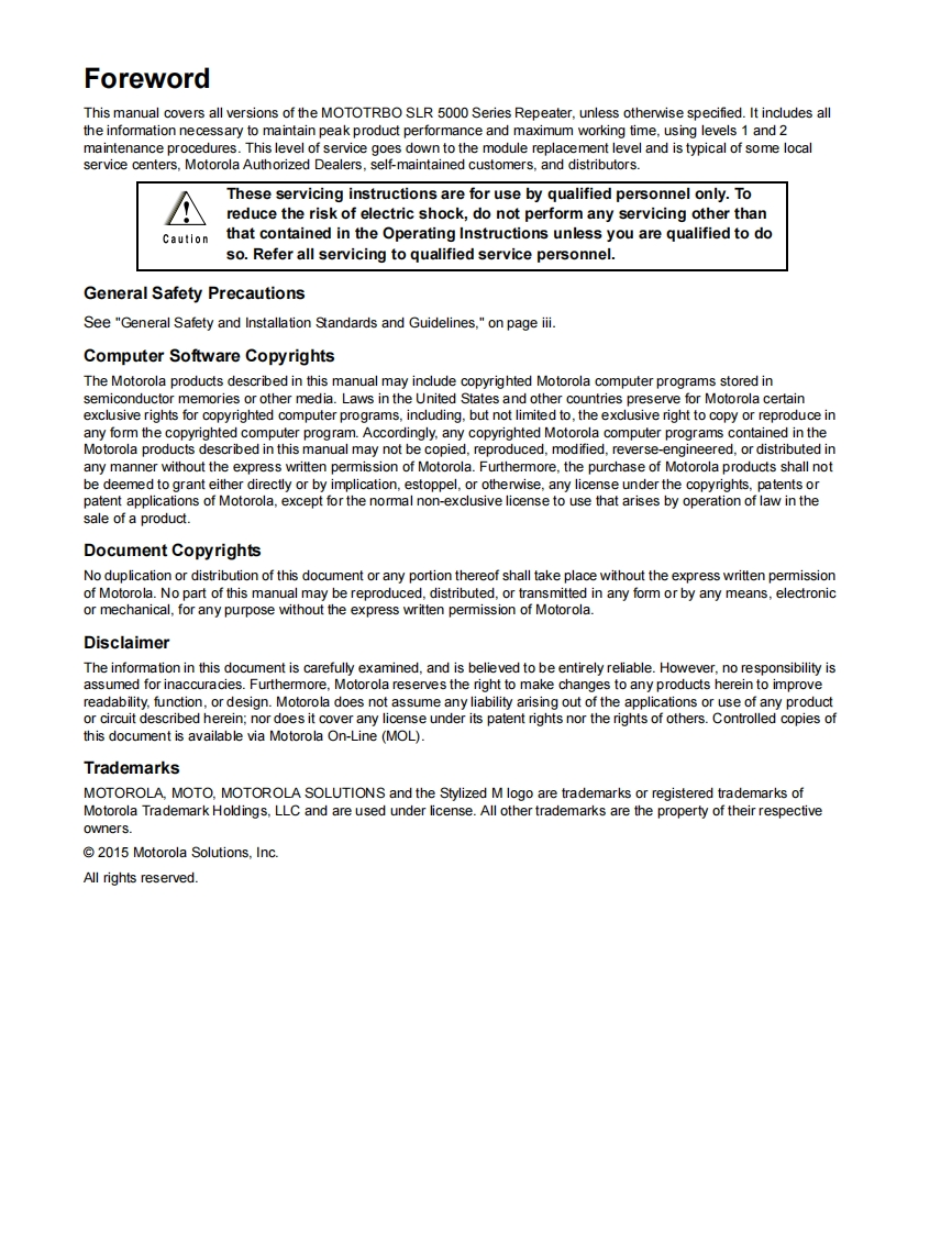 SLR5500_BSIM_EN348072@abc5天前发布关注私信19.20MB166页043SLR5500_BSIM_EN此内容为付费资源,请付费后查看¥29¥39黄金会员免费钻石会员免费立即购买您当前未登录!建议登陆后购买,可保存购买订单付费资源 第1页 / 共166页 第2页 / 共166页 试读已结束,还剩164页,您可下载完整版后进行离线阅读 THE END无线电 文本预览 从MOTOROLA MOTOTRBOTM SLR 5000 Series RepeaterBasic Service and Installation ManualMN001437A01-AA 查看更多 收起部分 喜欢就支持一下吧收藏