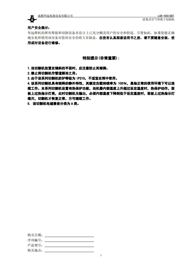 LGK-400IGBT-逆变式空气等离子切割机-使用说明书348072@abc5天前发布关注私信1.44MB25页043LGK-400IGBT-逆变式空气等离子切割机-使用说明书此内容为付费资源,请付费后查看¥29¥39黄金会员免费钻石会员免费立即购买您当前未登录!建议登陆后购买,可保存购买订单付费资源 第1页 / 共25页 第2页 / 共25页 试读已结束,还剩23页,您可下载完整版后进行离线阅读 THE END工控机电 文本预览 及华远焊机B1-1509HUA YUAN WELDERLGK-400IGBT逆变式空气等离子切割机使用说明书(请在安装、使用、维护前认真阅读此说明书)成都华远电器设备有限公司22 查看更多 收起部分 喜欢就支持一下吧收藏