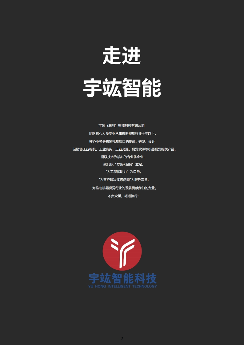 宇竑智能科技YU HONG INTELLIGENT TECHNOLOGY工业镜头手册YU HONGINDUSTRIAL LENS MANUAL
