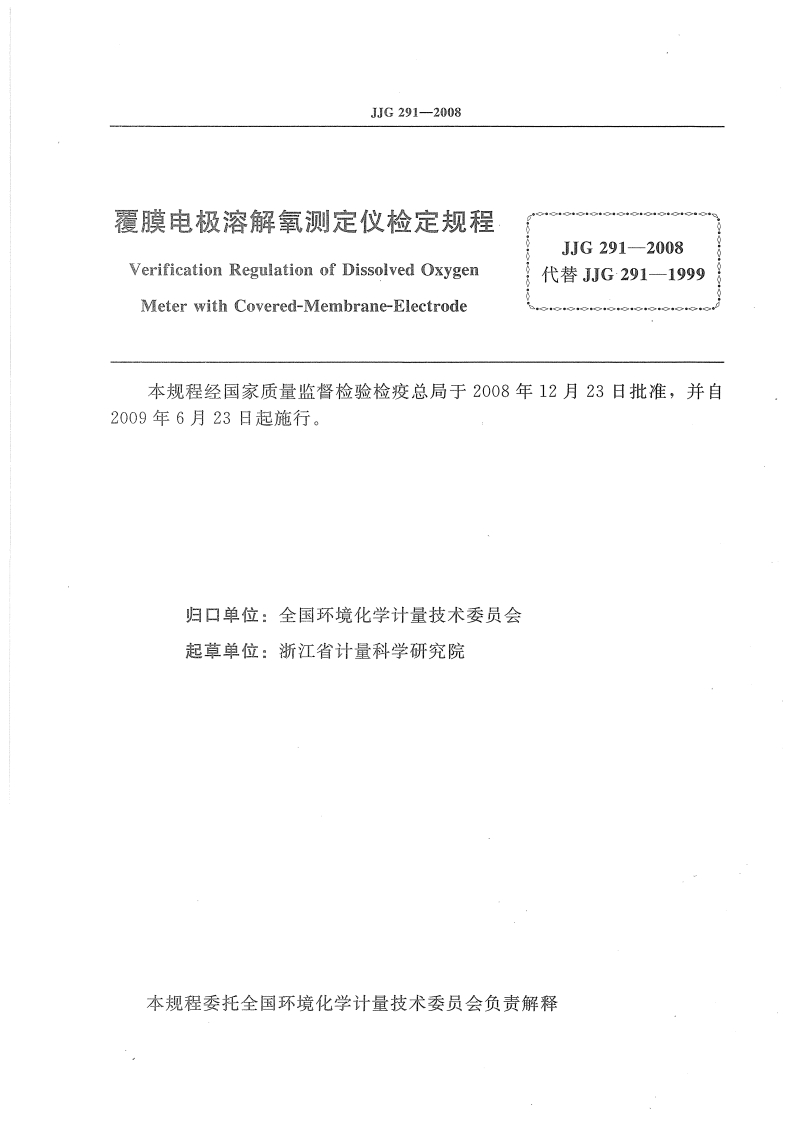 JJG291-2008覆膜电极溶解氧测定仪348072@abc4个月前发布关注私信1.73MB16页048JJG291-2008覆膜电极溶解氧测定仪此内容为付费资源,请付费后查看¥16¥23黄金会员免费钻石会员免费立即购买您当前未登录!建议登陆后购买,可保存购买订单付费资源 第1页 / 共16页 第2页 / 共16页 试读已结束,还剩14页,您可下载完整版后进行离线阅读 THE END标准规范 文本预览 中华人民共和国国家计量检定规程JJG291-2008覆膜电极溶解氧测定仪Dissolved Oxygen Meter withCovered-Membrane-Electrode2008-12-23发布2009-06-23实施国家质量监督检验检疫总局发布 查看更多 收起部分 喜欢就支持一下吧收藏