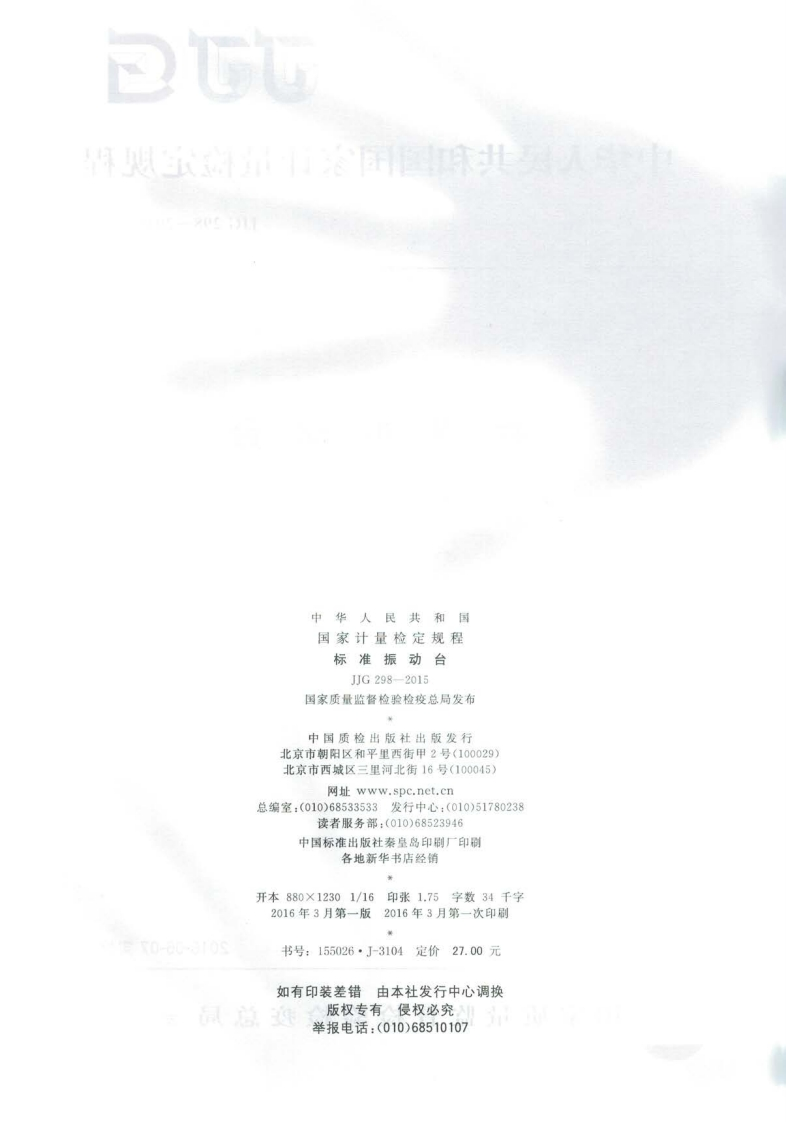 JJG298-2015标准振动台348072@abc4个月前发布关注私信3.81MB28页024JJG298-2015标准振动台此内容为付费资源,请付费后查看¥23¥34黄金会员免费钻石会员免费立即购买您当前未登录!建议登陆后购买,可保存购买订单付费资源 第1页 / 共28页 第2页 / 共28页 试读已结束,还剩26页,您可下载完整版后进行离线阅读 THE END标准规范 文本预览 J可G中华人民共和国国家计量检定规程JJG298-2015标准振动台Standard Vibrators2015-12-07发布2016-06-07实施Φ房国家质量监督检验检疫总局发布 查看更多 收起部分 喜欢就支持一下吧收藏