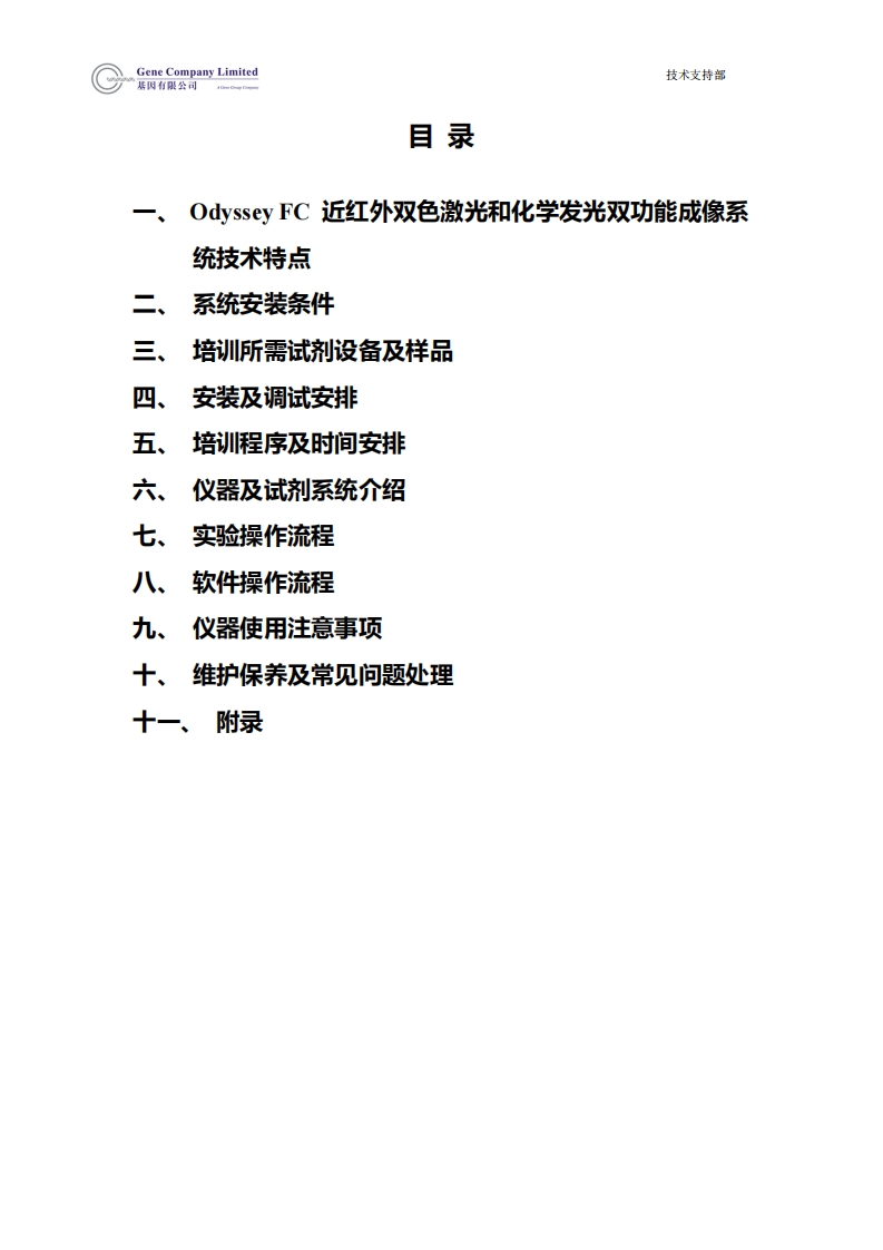 Gene Company Limited技术支持部居因有限公司Odyssey FC近红外双色激光和化学发光双功能成像系统培训手册L/COROOUYSEY基因有限公司生命科学组
