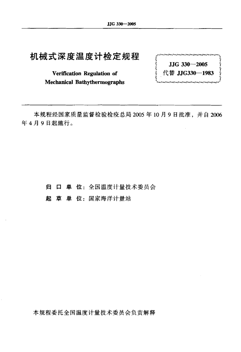 JJG330-2005机械式深度温度计348072@abc4个月前发布关注私信0.27MB15页045JJG330-2005机械式深度温度计此内容为付费资源,请付费后查看¥13¥23黄金会员免费钻石会员免费立即购买您当前未登录!建议登陆后购买,可保存购买订单付费资源 第1页 / 共15页 第2页 / 共15页 试读已结束,还剩13页,您可下载完整版后进行离线阅读 THE END标准规范 文本预览 可可G中华人民共和国国家计量检定规程JJG330-2005机械式深度温度计Mechanical Bathythermographs2005-10-09发布2006-04-09实施国家质量监督检验检疫总局发布 查看更多 收起部分 喜欢就支持一下吧收藏
