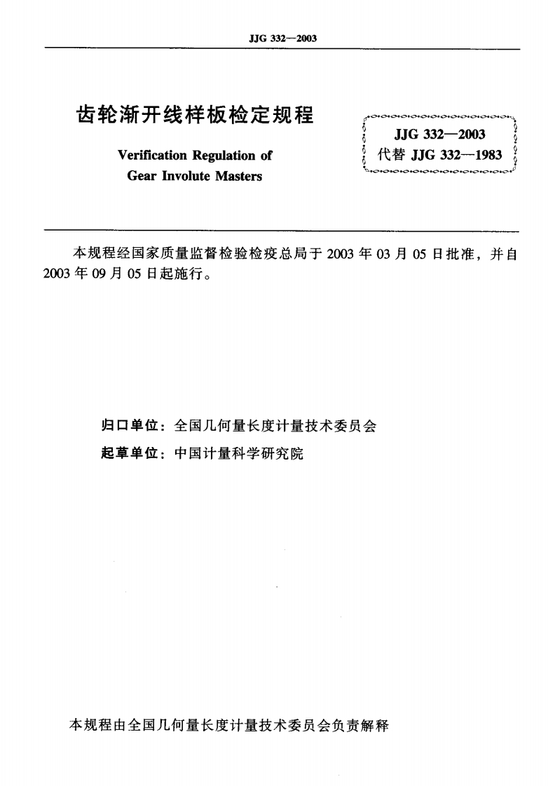 JJG332-2003齿轮渐开线样板348072@abc4个月前发布关注私信0.56MB22页041JJG332-2003齿轮渐开线样板此内容为付费资源,请付费后查看¥13¥23黄金会员免费钻石会员免费立即购买您当前未登录!建议登陆后购买,可保存购买订单付费资源 第1页 / 共22页 第2页 / 共22页 试读已结束,还剩20页,您可下载完整版后进行离线阅读 THE END标准规范 文本预览 可怎中华人民共和国国家计量检定规程JJG332-2003齿轮渐开线样板Gear Involute Masters2003-03-05发布2003-09-05实施国家质量监督检验检疫总局发布 查看更多 收起部分 喜欢就支持一下吧收藏