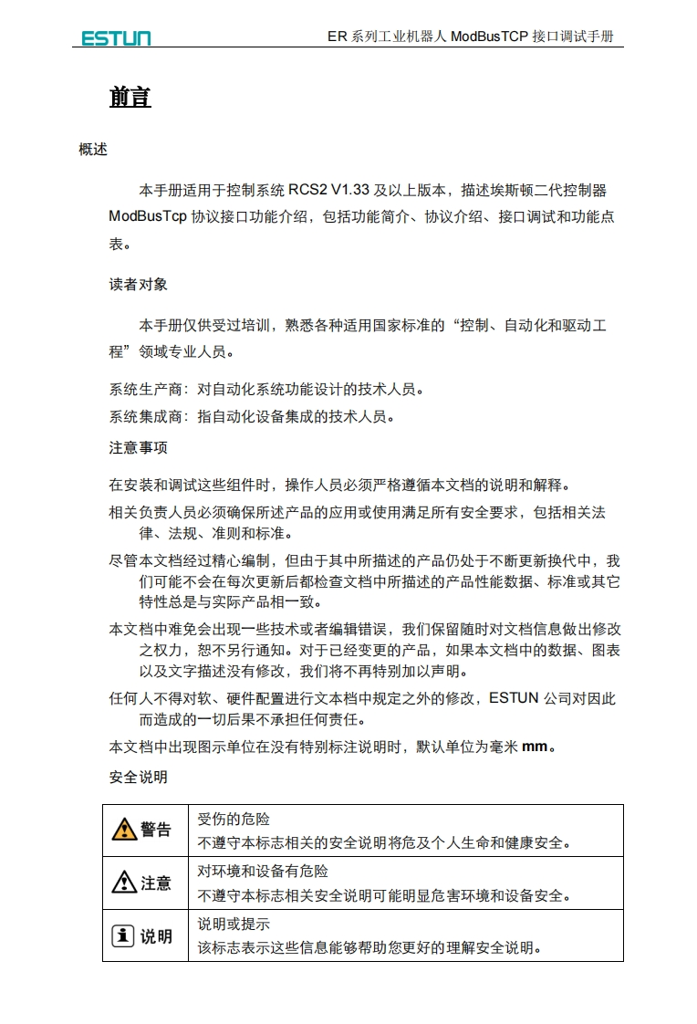 ESTUN埃斯顿机器人ER系列工业机器人ModBusTCP接口调试手册_RCS2-V2.0348072@abc7天前发布关注私信3.18MB48页025ESTUN埃斯顿机器人ER系列工业机器人ModBusTCP接口调试手册_RCS2-V2.0此内容为付费资源,请付费后查看¥29¥39黄金会员免费钻石会员免费立即购买您当前未登录!建议登陆后购买,可保存购买订单付费资源 第1页 / 共48页 第2页 / 共48页 第3页 / 共48页 第4页 / 共48页 第5页 / 共48页 试读已结束,还剩43页,您可下载完整版后进行离线阅读 THE END工控机电 文本预览 ER系列工业机器人ModbusTCP调试手册(RCS2V2.0) 查看更多 收起部分 喜欢就支持一下吧收藏