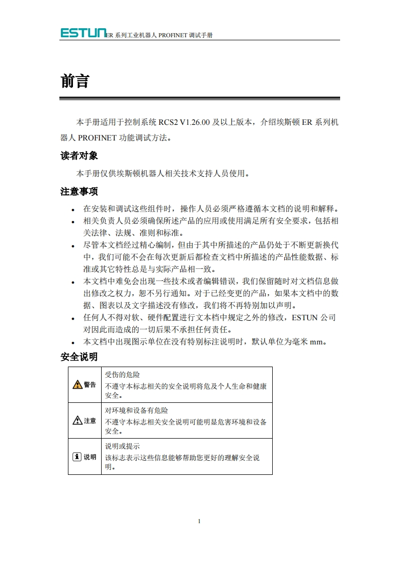 ESTUN埃斯顿机器人ER系列工业机器人PROFINET调试手册348072@abc7天前发布关注私信1.52MB20页044ESTUN埃斯顿机器人ER系列工业机器人PROFINET调试手册此内容为付费资源,请付费后查看¥29¥39黄金会员免费钻石会员免费立即购买您当前未登录!建议登陆后购买,可保存购买订单付费资源 第1页 / 共20页 第2页 / 共20页 第3页 / 共20页 第4页 / 共20页 第5页 / 共20页 试读已结束,还剩15页,您可下载完整版后进行离线阅读 THE END工控机电 文本预览 ESTUㄇESTU几ROBOTICSER系列工业机器人PROFINET调试手册RCS2V100南京埃斯顿自动化股份有限公司南京埃斯顿机器人工程有限公司-本文档符合IS0体系要求,并会根据PD体系变化更新- 查看更多 收起部分 喜欢就支持一下吧收藏