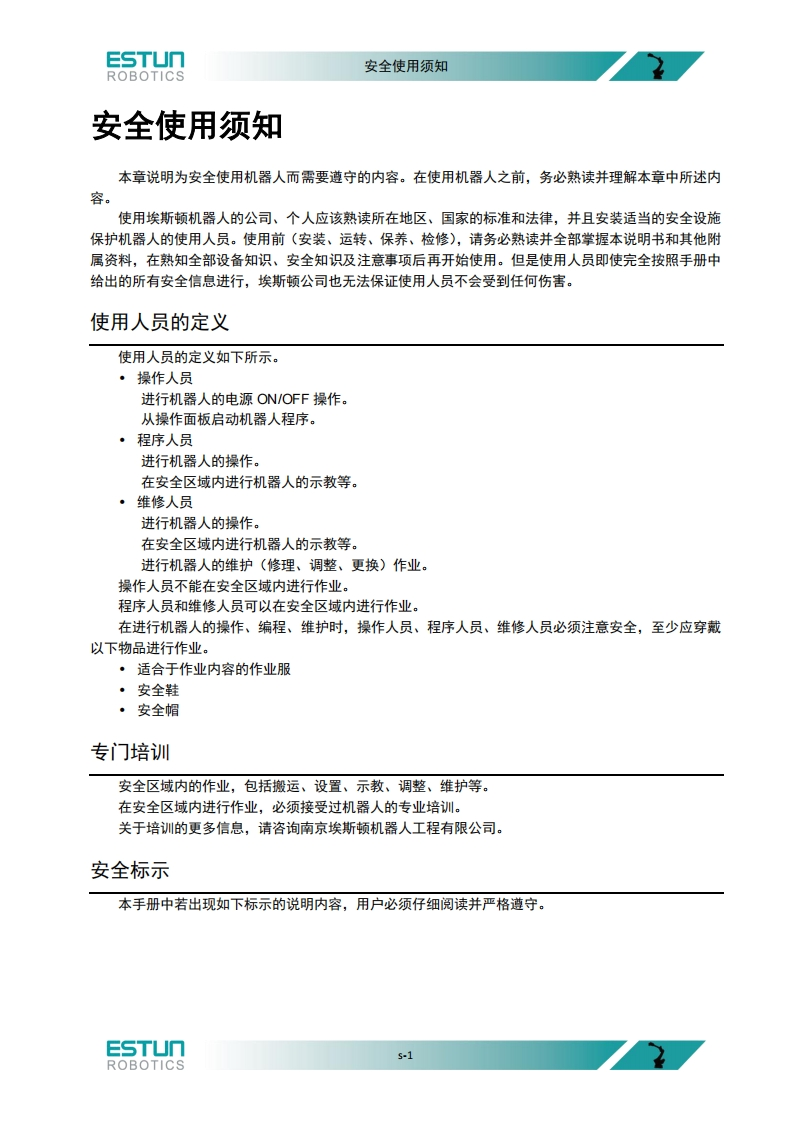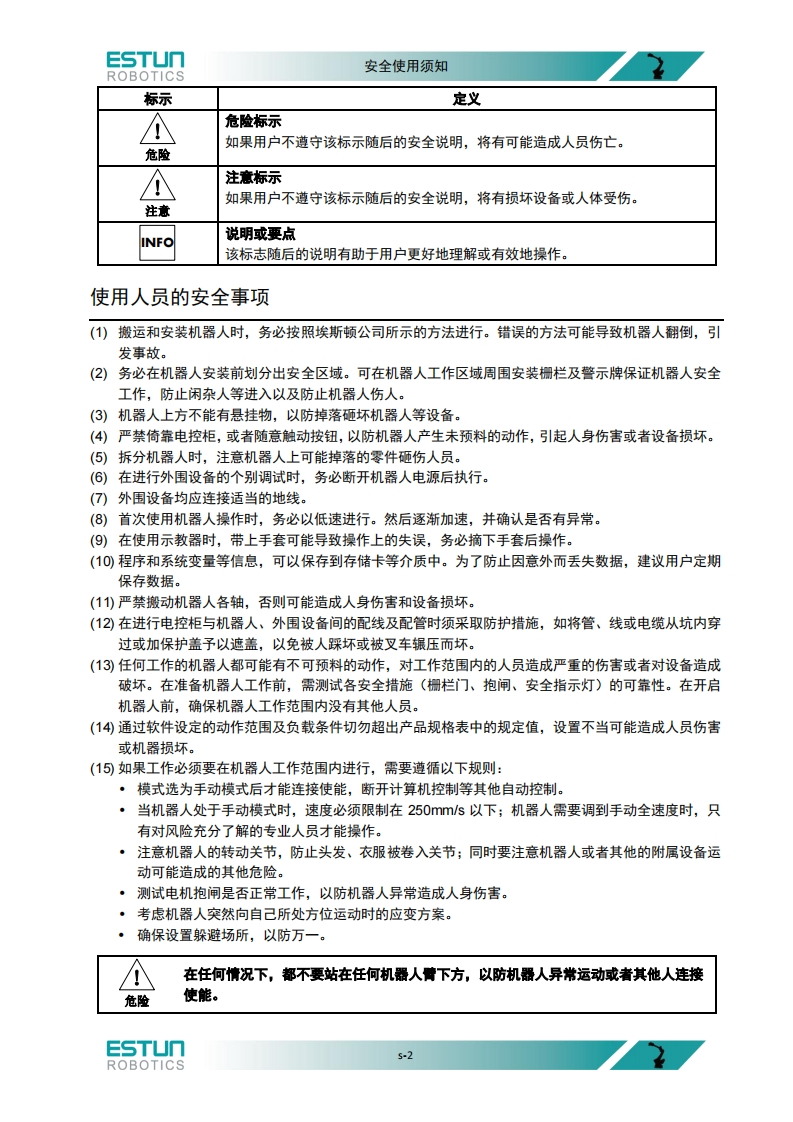 ESTUN埃斯顿机器人ESTUN机器人迷你系列-本体使用说明书348072@abc6天前发布关注私信2.68MB44页043ESTUN埃斯顿机器人ESTUN机器人迷你系列-本体使用说明书此内容为付费资源,请付费后查看¥29¥39黄金会员免费钻石会员免费立即购买您当前未登录!建议登陆后购买,可保存购买订单付费资源 第1页 / 共44页 第2页 / 共44页 第3页 / 共44页 第4页 / 共44页 第5页 / 共44页 试读已结束,还剩39页,您可下载完整版后进行离线阅读 THE END工控机电 文本预览 ESTUnROBOTIC SESTUnOPERATIONINSTRUCTIONSEST山几机器人迷你系列本体使用说明书ALLMADEBY ESTUNESTUnAUTOMATION 查看更多 收起部分 喜欢就支持一下吧收藏