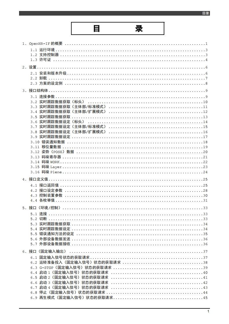 509,TFD0N-175-001,00☑NACHIFD/CFD控制装置用运行库模块OpenNR-IF操作说明书第1版·使用机器人之前,请务必仔细阅读本操作说明书,遵守所有的安全相关事项并按照本文的指示进行操作。·只限接受过相应培训的人员可以对本机器人进行相关处理(安装、操作、维护等)。·使用本机器人时,请务必遵守各国的工业机器人相关法律及安全相关法律。·务必将本说明书发给实际进行操作的人员。·对本说明书的疑点及本机器人的售后服务,请咨询封底所述的本公司各服务中心。株式会社不二越