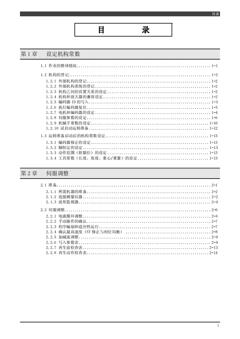 1307,TFDCN--065-002.001NACHIFD控制装置操作说明书面向EPT的外部机构调整要领手册第2版·使用机器人之前,请务必仔细阅读本操作说明书,遵守所有的安全相关事项并按照本文的指示进行操作。·本机器人的安装、操作、维护作业仅限接受过本公司机器人培训的人员实施。·使用本机器人时,请务必遵守各国的工业机器人相关法令及安全相关法令。·请务必将本操作说明书交至实际操作人员手中。·有关本说明书的任何不明之处及本机器人的售后服务事宜,请咨询封底所述的本公司的各服务中心。株式会社不二越