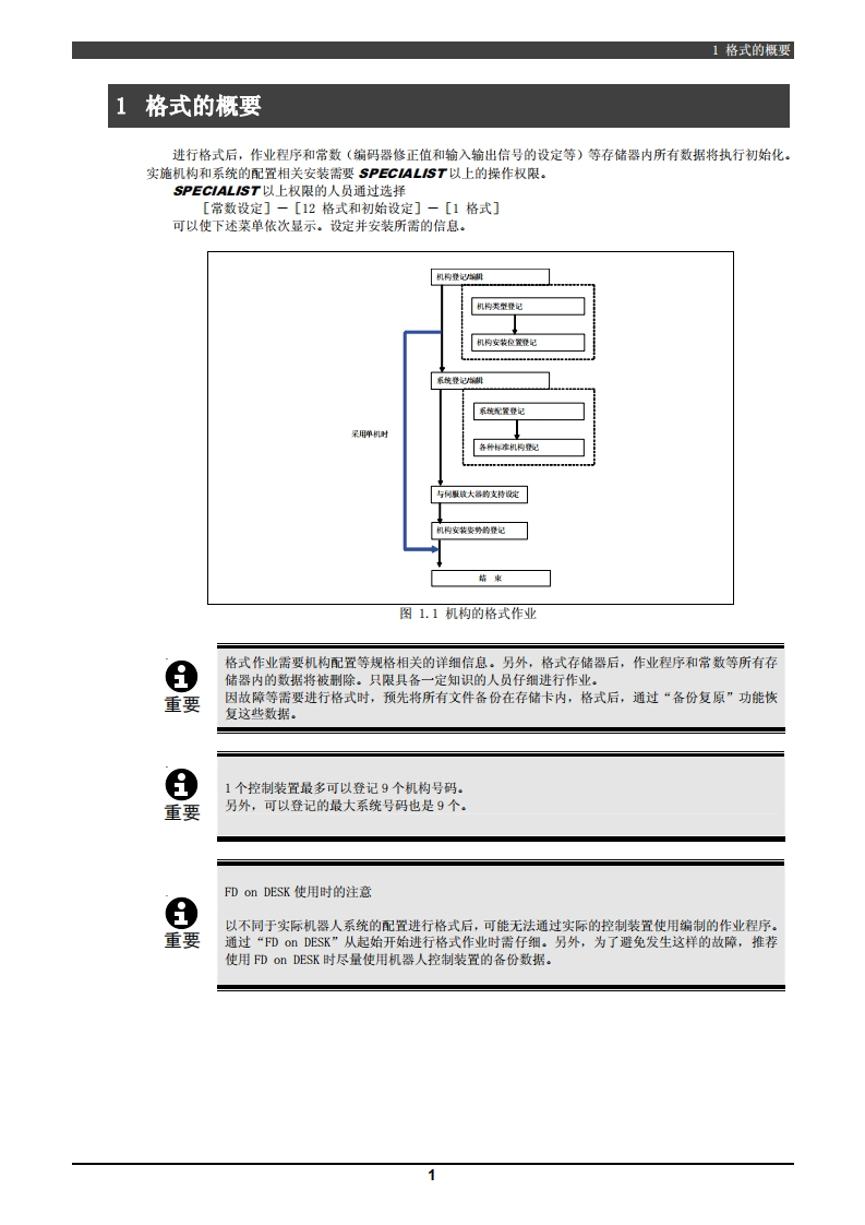 1208,TFDN-094-00L,001NACHIFD控制装置操作说明书存储器格式步骤第1版·使用机器人之前,务必仔细阅读本操作说明书,遵守所有的安全相关事项并按照本文的指示进行操作。·只限接受过相应培训的人员可以对本机器人进行相关处理(安装、操作、维护等)。·使用本机器人时,务必遵守各国的工业机器人相关法律及安全相关法律。·务必将本说明书发给实际进行操作的人员。·对本说明书的疑点及本机器人的售后服务,请咨询封底所述的本公司各服务中心。株式会社不二越