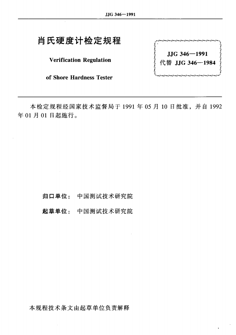 JJG346-1991肖氏硬度计348072@abc4个月前发布关注私信0.20MB11页026JJG346-1991肖氏硬度计此内容为付费资源,请付费后查看¥13¥23黄金会员免费钻石会员免费立即购买您当前未登录!建议登陆后购买,可保存购买订单付费资源 第1页 / 共11页 第2页 / 共11页 试读已结束,还剩9页,您可下载完整版后进行离线阅读 THE END标准规范 文本预览 可囡中华人民共和国国家计量检定规程JJG346-1991肖氏硬度计Shore Hardness Tester1991-05-10发布1992-01-01实施国家技术监督局发布 查看更多 收起部分 喜欢就支持一下吧收藏