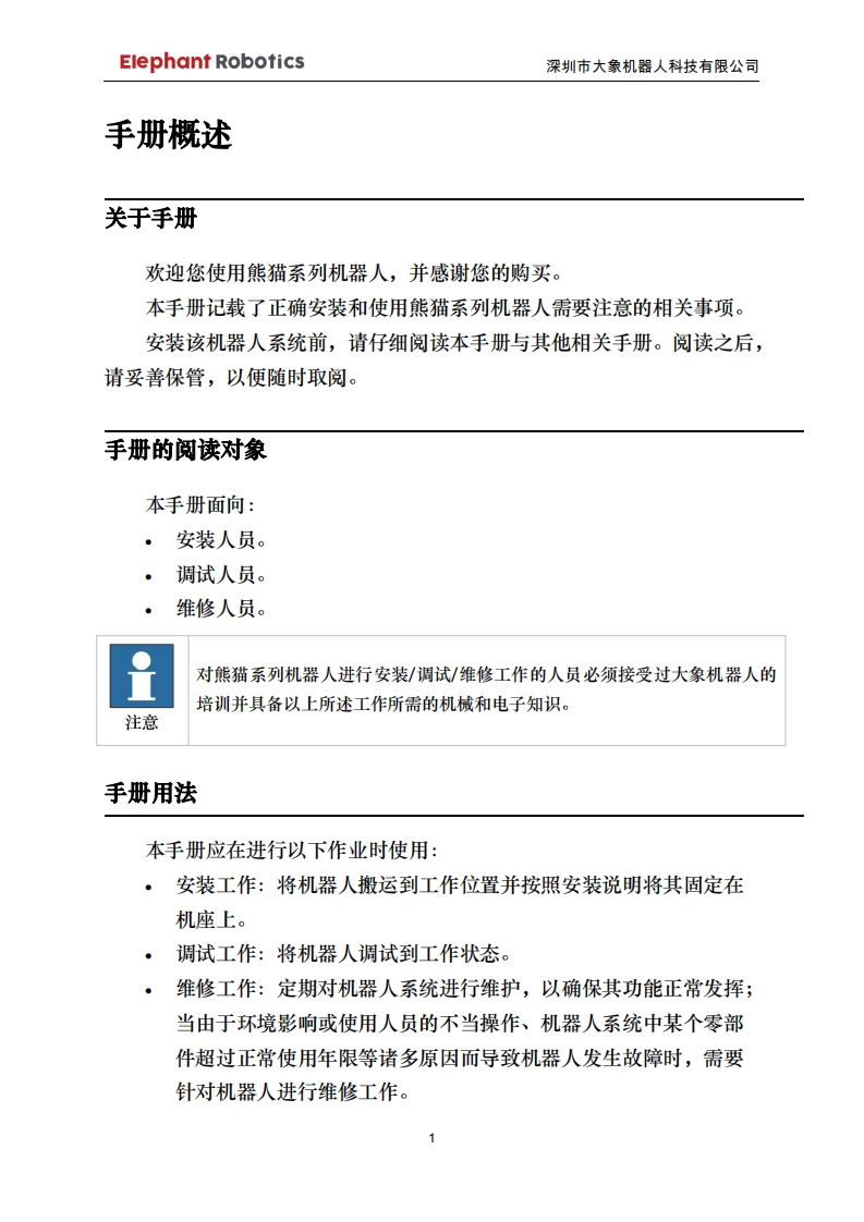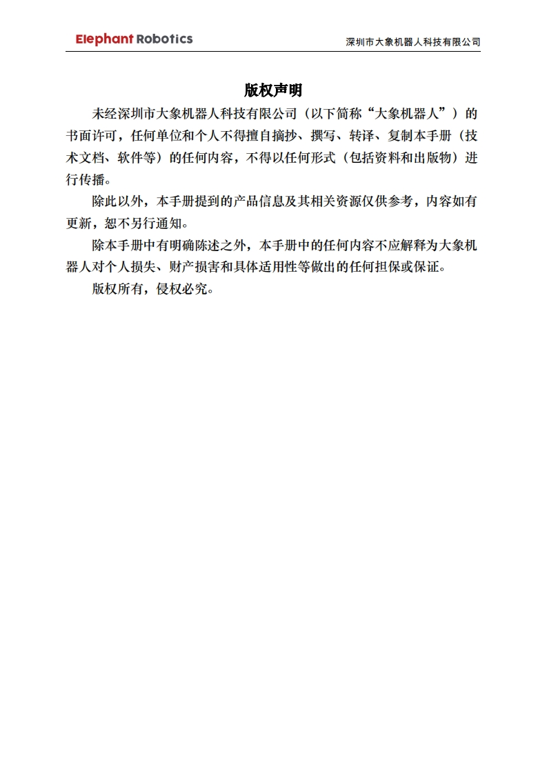 Panda-用户手册-CN348072@abc3天前发布关注私信2.25MB37页028Panda-用户手册-CN此内容为付费资源,请付费后查看¥29¥39黄金会员免费钻石会员免费立即购买您当前未登录!建议登陆后购买,可保存购买订单付费资源 第1页 / 共37页 第2页 / 共37页 第3页 / 共37页 第4页 / 共37页 第5页 / 共37页 试读已结束,还剩32页,您可下载完整版后进行离线阅读 THE END工控机电 文本预览 Elephant Robotics深圳市大象机器人科技有限公司大象机器人用户手册熊猫系列机器人1.0版本语言:中文2019/01编写©版权所有2017-2019深圳市大象机器人科技有限公司保留所有权利 查看更多 收起部分 喜欢就支持一下吧收藏