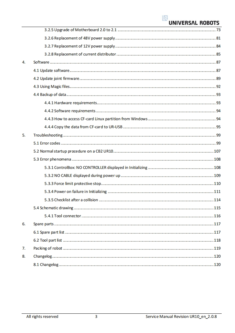 优傲机器人UR10_en_2.0.8维修维护手册348072@abc前天发布关注私信5.83MB120页029优傲机器人UR10_en_2.0.8维修维护手册此内容为付费资源,请付费后查看¥29¥39黄金会员免费钻石会员免费立即购买您当前未登录!建议登陆后购买,可保存购买订单付费资源 第1页 / 共120页 第2页 / 共120页 第3页 / 共120页 第4页 / 共120页 第5页 / 共120页 试读已结束,还剩115页,您可下载完整版后进行离线阅读 THE END工控机电 文本预览 风UNIVERSAL ROBOTSService ManualRevision UR10_en_2.0.8"Original instructions"Robot:UR10 with CB2-controllervalid from robot s/n 2012200015/6 查看更多 收起部分 喜欢就支持一下吧收藏