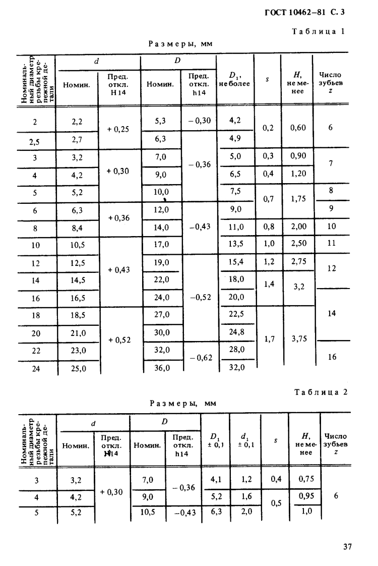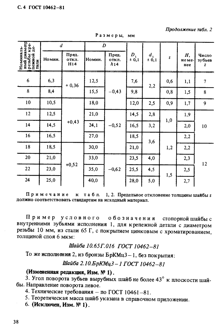 yIK621.882.4-231.322:006.354Tpynna T36rO CyA P C T B E HH bI ACTAHIAPT CO3ACCPWAABbI CTONOPHbIE C BHYTPEHHHMHTOCT3y6bAMK10462-81*KoHcTpyKuHa H pa3MepblShake-proof washers with inside teeth.Design and dimensionsB3aMeHr0CT10462-630KΠ459800nocTaHoBJeHHeM TocyaapcTBeHHoro KoMHTera CCCP no craHgapTaM OT 31 MapTa 1981 r.No 1702 cpok BBeaeHHa ycTaHoBneHc01.01.82npoBepeH B 1986 r.nocTaHoBneHHeM ToccraHaapTa OT 04.03.86 N 470cpok aencTBHA mpomneH4001.01.92Heco6moneHHe cTaHnapra npecneayerca no 3akoHy1.Hacroaumi cTaHnapT pacnpocrpaHgerca Ha Hace Hble n BbIpyOHbIe CTo-nopHbIe IanobI c BHyTpeHHHMH 3y6bAMH,npemHa3HayeHHble KpenexKHbIXeTajen c pe3b6on oT 2 Ho 24 MM.2.KoHCTpyKuma H pa3Mepbl wan6 HOKHbI cOOTBeTCTBOBaTb yKa3aHHbIMHa yepTexe H B Ta6JI.1 Ia HaceyHbIx wan6,Ta6.2 Ia BbIpy6HbIX wan6.M3 aHne o中HLKanbHoenepenevarka BocnpemueHa半*ITepeu3danue (geepan 19892.)c H3MenexueM N 1,yreepxcdennbiM Mapre 1986 2.HyC6-86.35