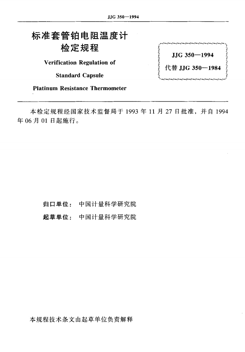 JJG350-1994标准套管铂电阻温度计348072@abc4个月前发布关注私信0.77MB29页042JJG350-1994标准套管铂电阻温度计此内容为付费资源,请付费后查看¥13¥23黄金会员免费钻石会员免费立即购买您当前未登录!建议登陆后购买,可保存购买订单付费资源 第1页 / 共29页 第2页 / 共29页 试读已结束,还剩27页,您可下载完整版后进行离线阅读 THE END标准规范 文本预览 可可厨中华人民共和国国家计量检定规程JJG350一1994标准套管铂电阻温度计Standard CapsulePlatinum Resistance Thermometer1993-11-27发布1994-06-01实施国家技术监督局发布 查看更多 收起部分 喜欢就支持一下吧收藏