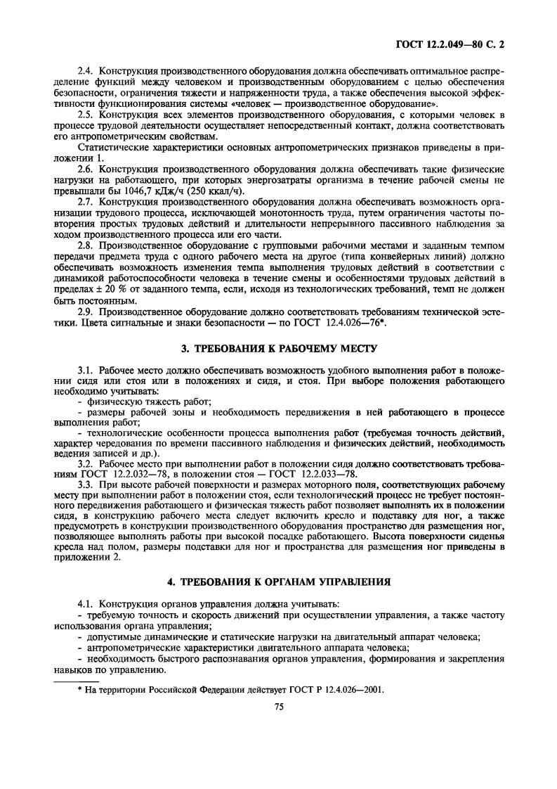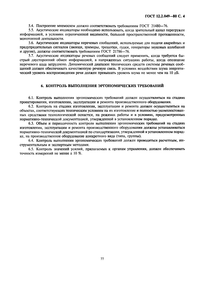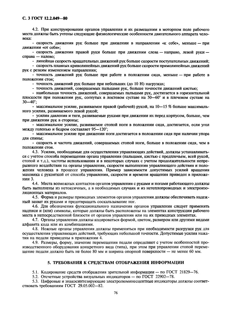 yLK331.015.11:006.354Tpynna T58M E X r O C y IA P C T B E HH bI HCTAHIAPTCHcTema cTamapToB 6e3onacHOcTH TpyaaOBOPYOBAHME IIPON3BOICTBEHHOETOCTOomHe 9proHOMHyecKHe TpeooBaHHa12.2.049-80Occupational safety standards system.Industrial equipmentGeneral ergonomic requirementsIIocTaHOBneHHeM TocyaapcTBeHHoro KOMMTera CCCP no cTaHapTaM OT 17 Hona 1980 r.Ne 3679 cpox BBeneunsyCTaHoBneHc01.01.82HacTosni cTaHapT pacnpoctpaHaerca Ha BHOBb npoeKTHpyemoe H MonepHH3Hpyemoe npon3BOA-CTBeHHoe o6opynoBaHne,npHMeHgemoe Bo Bcex oTpacnax HaponHoro xo39MCTBa,H ycTaHaBHBaeT o6IHe9proHoMHyeckHe TpeooBaHHa K HeMy.CraHnapT He pacnpoctpaHaerca Ha TpaHcnopTHble cpencTBa n npon3BOnCTBeHHoe o6opynoBaHHe,nepeMemaromeeca B npouecce paboTbI.TepMHHbI,npHMeHseMble B HacToameM cTaHnapTe,-no TOCT 12.0.002-80,TOCT 26387-84.1.O6IMEΠOJIOXKEHNA1.1.proHoMHyecKHe Tpe6oBaHHa K npOH3BOICTBEHHOMy o6opynoBaHHIO HOJKHbI ycTaHaBnHBaTbero COOTBeTCTBHe aHTponoMeTpHyeCKHM,(H3HOJOTHeCKHM,IICHXOOH3HOJIOTHeCKHM H ICHXOJOTHYec-KHM CBOHCTBaM yeJoBeKa H ooyCoBeHHbIM 9THMH CBOHCTBaMH THTHeHHyeCKHM TpeooBaHHAM c LeJblOcoxpaHeHna 3opOBba qeJoBeka H HOCTHKEHHA BbICOKOM 9eKTHBHOCTH Tpyna.1.2.SproHoMHecKHe Tpe6oBaHHa K npoH3BOICTBeHHOMy o6opynoBaHHIO HOJKHbI yCTaHaRHBaTbcaK TeM ero 9neMeHTaM,KOTopble conpaxeHbI c yeJoBeKoM nPH BEITIOJTHeHHH HM TPyoBbIX JICHCTBHA Bnpoulecce 9KcnTyaTauHH,MOHTaka,peMoHTa,TpaHcnopTHpoBaHHa H xpaHeHHa npoH3BOICTBeHHorO 060-pyoBaHna.1.3.IpH ycTaHoBeHHH 9proHoMHeCKHx Tpe6oBaHHH K npoH3BOICTBeHHOMy o6opynoBaHHIO He-OOXO HMO paccmaTpHBaTb ooopynoBaHne B KoMIekce co cpecTBaMH TeXHOJOTHYeCKOH H B HeoOXOHMbIXcnyuaAx opraHn3alHOHHOH OCHacTKH.2.OBINE TPE6OBAHNA2.1.YpoBHH H3HYeCKHX,XHMHeCKHX H 6HOJOrHYeCKHX onaCHbIX H BpeHbIX npOH3BOACTBeHHbIXaKropoB,reHepHpyeMbIx npoH3BOACTBeHHbIM o6opynoBaHHeM B paoouyo 3oHy,a Takke Bo3neACTByIOLHxHa paooralomlero npH HenocpencTBCHHOM KOHTaKTe c 9JeMeHTaMH KOHCTPyKIHH,HODKHbI COOTBeTCTBO-BaTb Tpe6oBaHHAM 6e3onacHOCTH,ycTaHoReHHbIM HoPMaTHBHO-TexHHyecKoH oKyMeHTauHen,yTBepx-eHHOM B ycTaHoBneHHOM nopake.2.2.BxOJIne B KOHCTpyKIHIO npOH3BOICTBeHHorO o6opynoBaHHa cnemHambHbIe TexHHyecKHe HcaHnTapHo-TexHHqecKHe cpencTBa (orpaxcHHa,9KpaHbI,BeHTHATOPbI H np.)obecnenBalolne ycTpa-HCHHe HIH CHHXCHHe ypoBHen onaCHbIX H BpemHbIX npOH3BOICTBeHHbIX aKTopoB o oNyCTHMbIX3HayeHHH,He OJKHbI 3aTpyAHSTb BbINOHeHHe TPynoBbIX HeMCTBHA.2.3.B Heo6xO/MMbIX cyuasx KOHCTpyKIMa npoH3BOICTBeHHorO 06opynoBaHHs OXHa o6ecneyM-BaTb BO3MOXKHOCTE yno6CTBa BbINOJHCHHS TPyOBbIX eHCTBHH C nPHMeHeHHeM cpenCTB HHIHBHIYabHOM3aINTbI.M3 taHHe o中uHanbHoeTepenearka Bocnpemena★Hepeusdanue.Okmabpo 2001 2.74