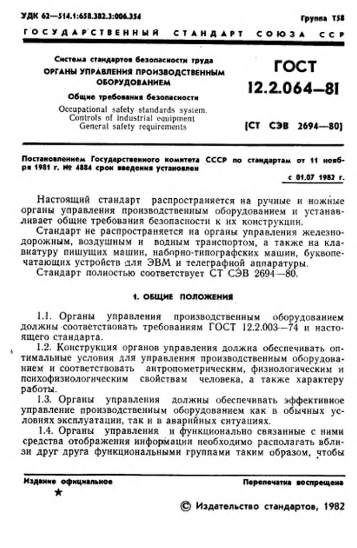 r O C y A AP C T B E HH b R C T AHA A P TC O K 3 A CC PCHCTEMA CTAHAAPTOB BE3OnACHOCTH TPyAAOPrAHbI ynPABNEHNA!nPON3BOACTBEHHbIMOBOPYDOBAHNEMOBWHE TPESOBAHHA BE3OnACHOCTH「oCT12.2.064-81(CTC3B2694-80)M3 AaHHe oφM叫anbHoeTOCyAAPCTBEHHLIA KOMHTET CCCP nO CTAHRAPTAMMOCK卷