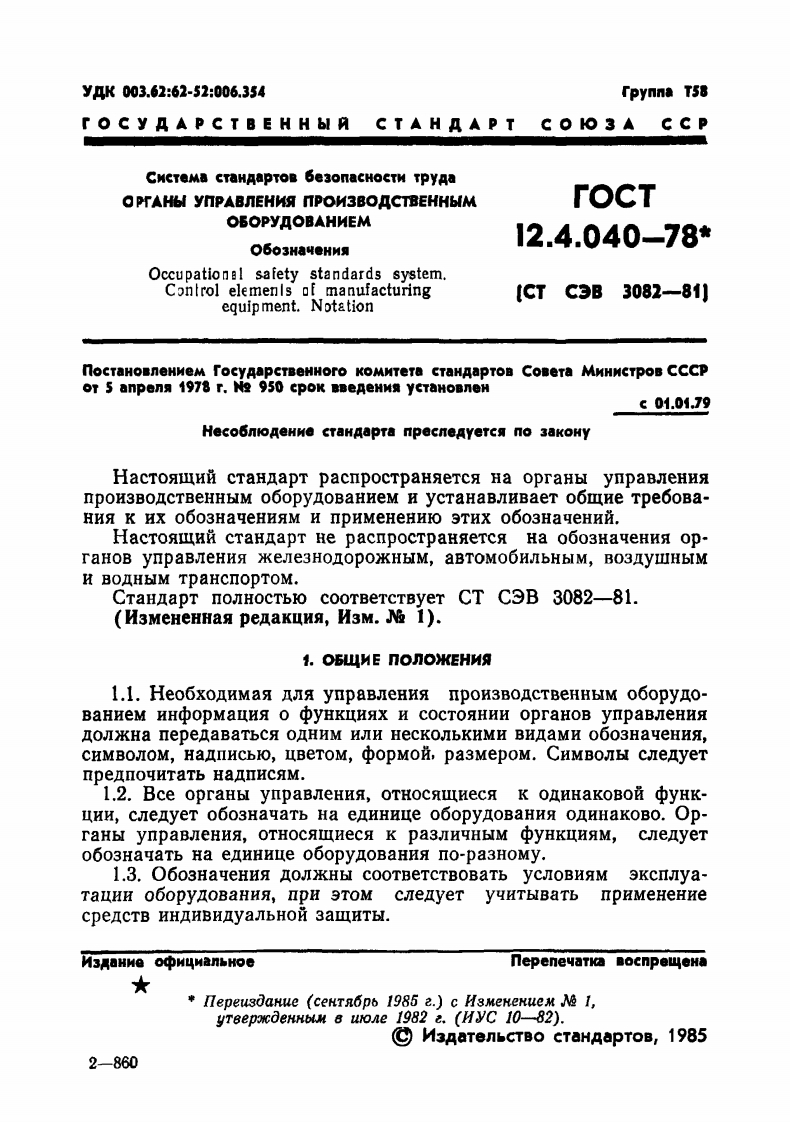 rOC y A AP C T B EH H LR C T A H AA PTCO KO3 A C CPCHCTEMA CTAHAAPTOB BE3ONACHOCTH TPYAAOPrAHbI YnPABNEHMAnPON3BOACTBEHHbIMOBOPyOBAHNEMO5O3HAYEHK「ocT12.4.040-78CTC3B3082-81)M3 AaHHe oφM4 hanbHoerocyAPCTBEHHLIA KOMMTET CCCP nO CTAHAAPTAMM o c Ka音
